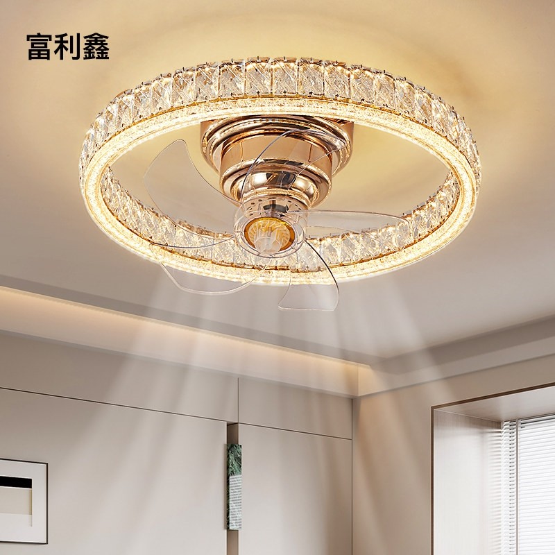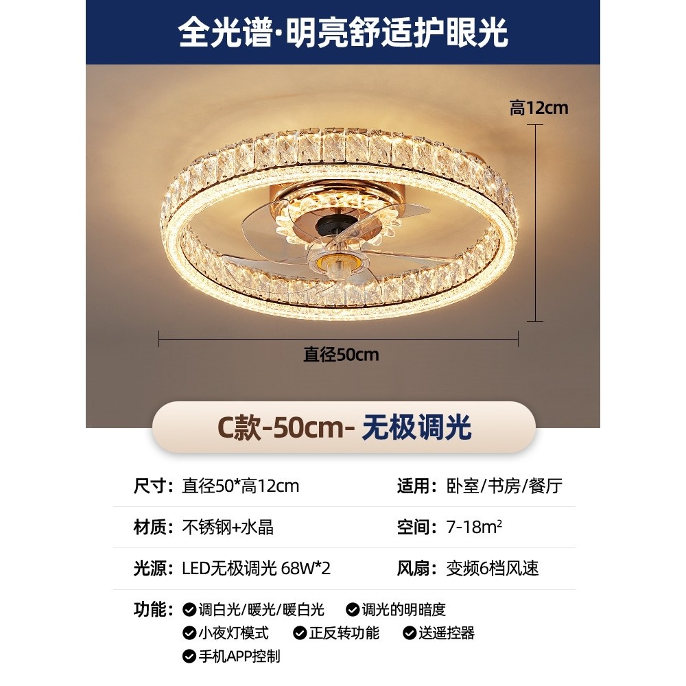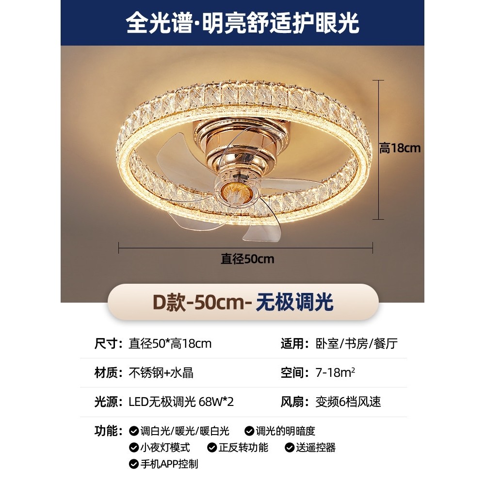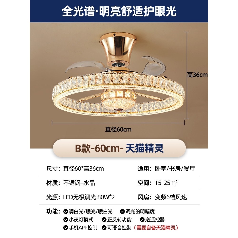 客厅吊扇灯家用一体吊灯大风力隐音水晶轻奢卧室风扇灯吸顶灯形静