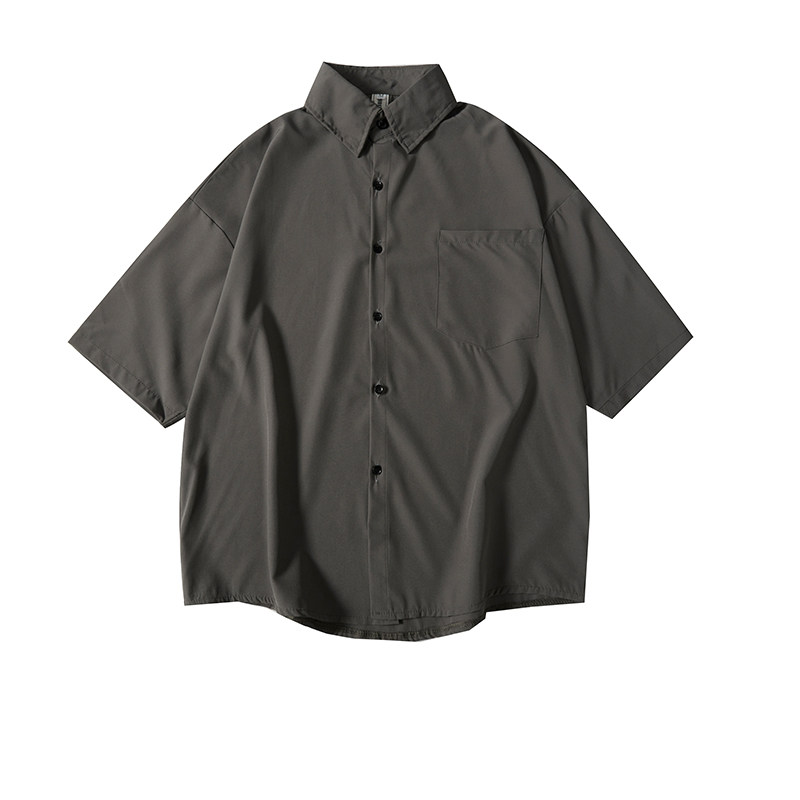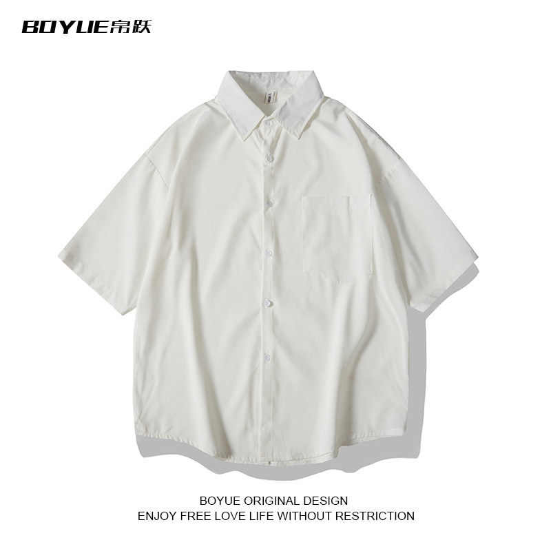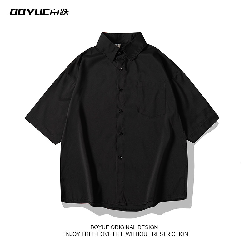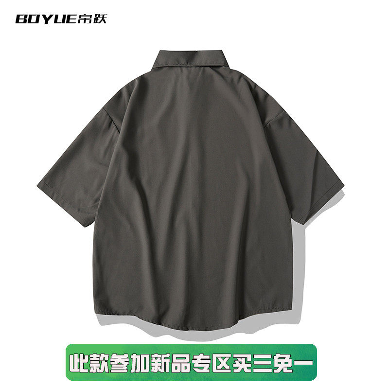 BOYUE帛跃日系街头纯色短袖衬衫男夏季宽松廓形bf风休闲衬衣外套