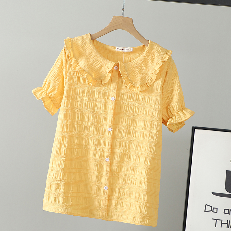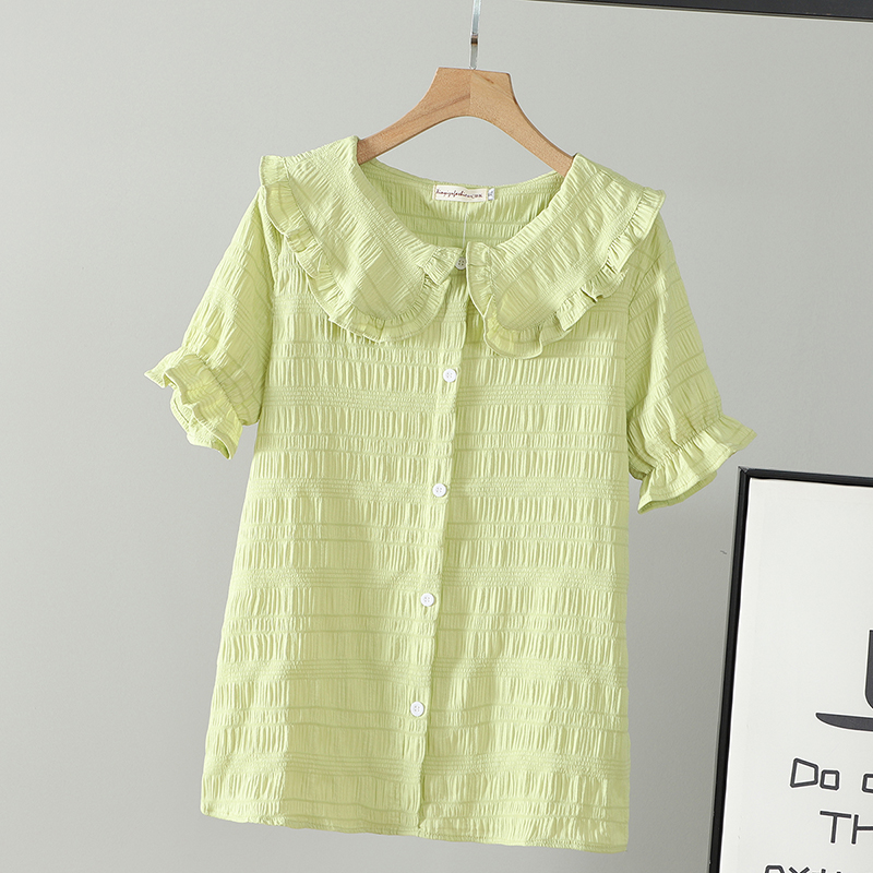 胖mm夏装盐系宽松减龄200斤遮肚子大码花边领短袖T恤女甜辣上衣