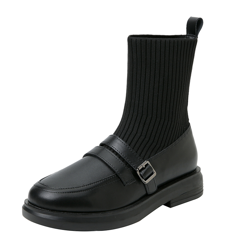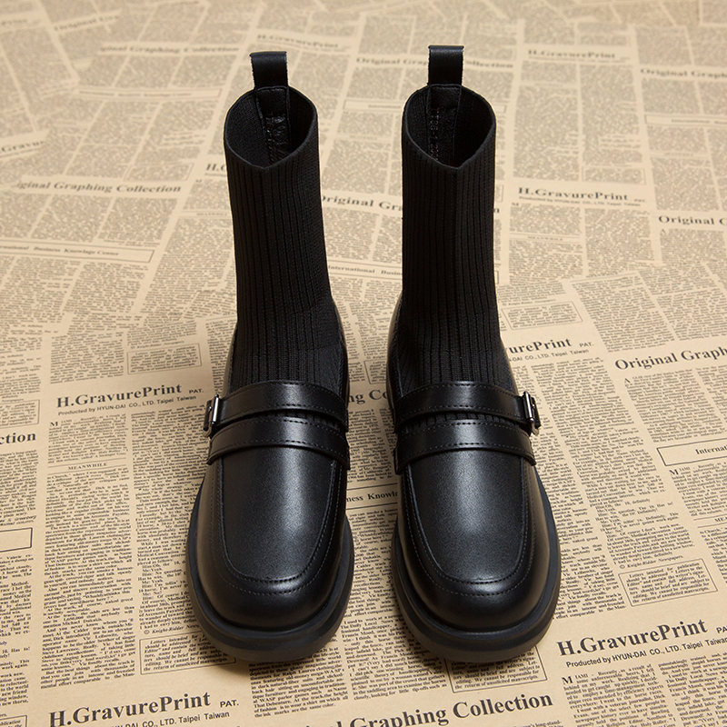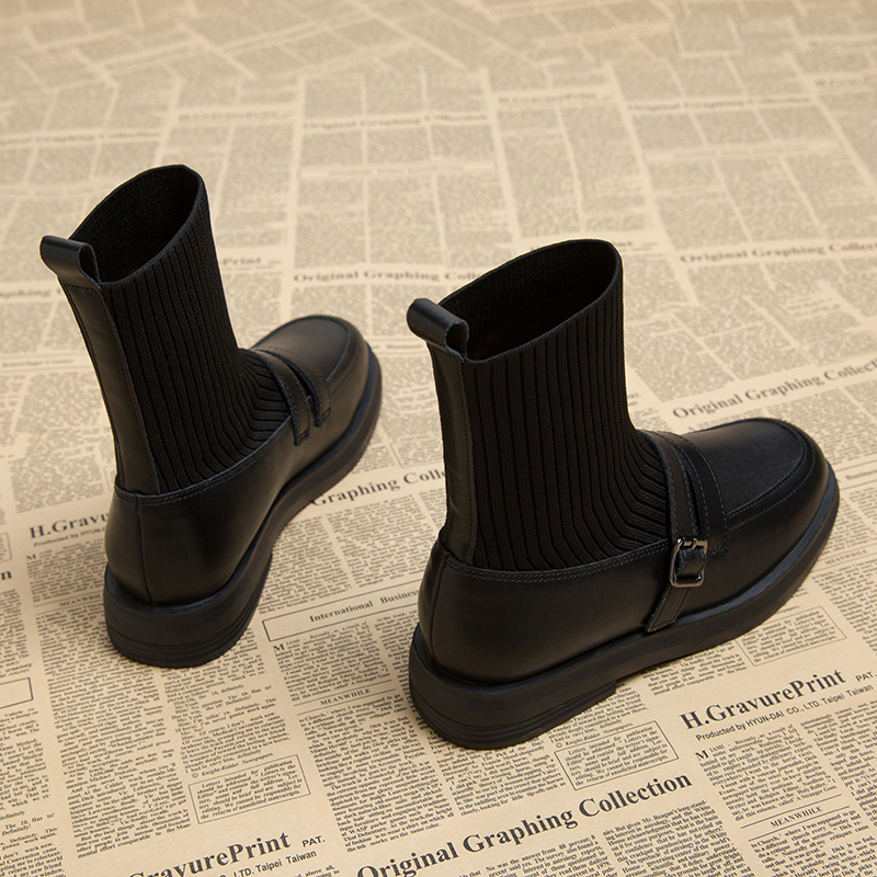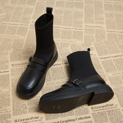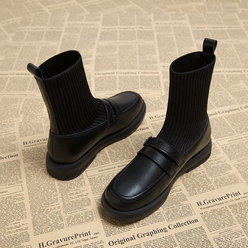 瘦瘦袜子靴女春秋单靴2025年新款增高马丁靴针织弹力冬季加绒短靴