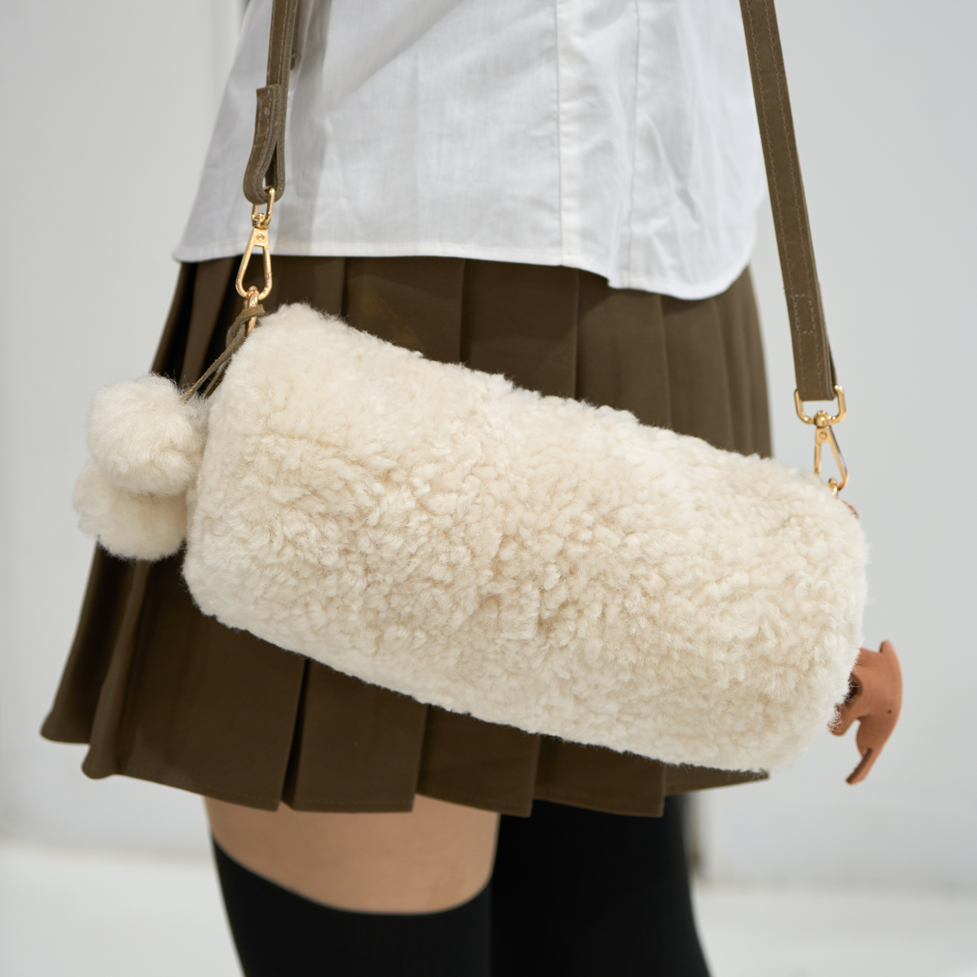 AUSKIN羊毛皮单肩斜挎圆筒包