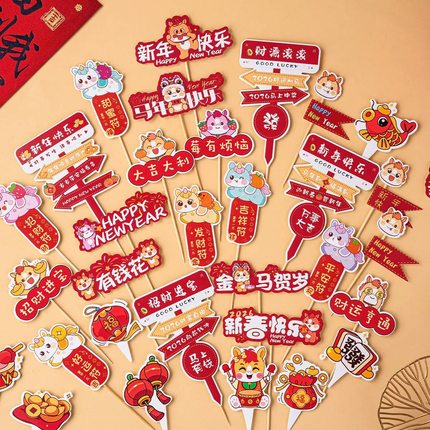 2026新年贺岁蛋糕装饰插牌马年大吉新春快乐元旦跨年摆件插件贴纸