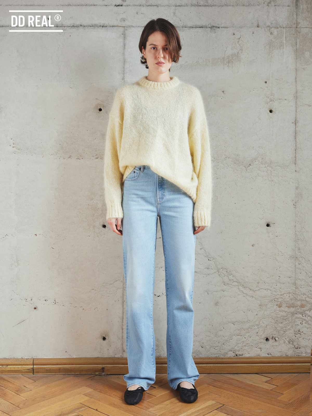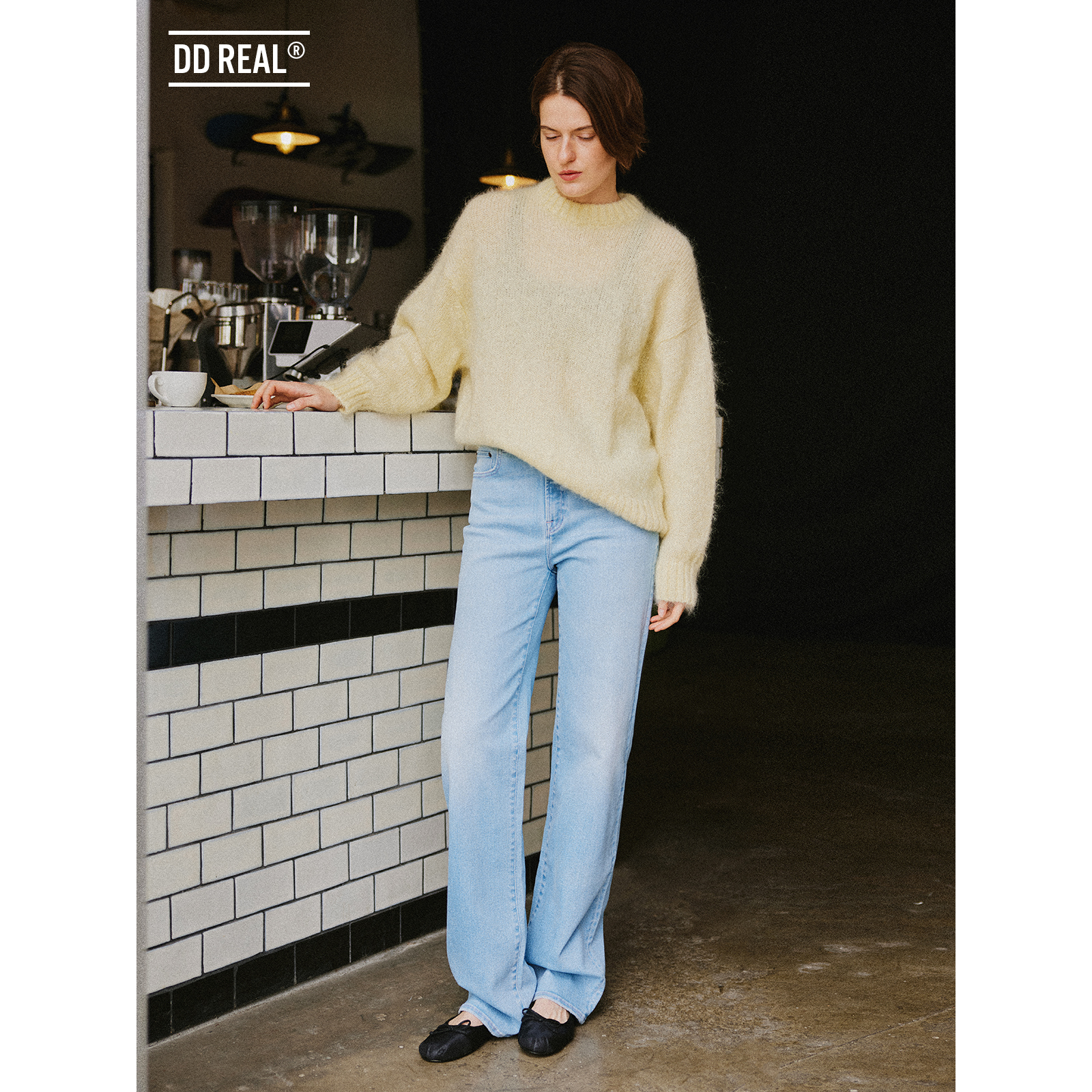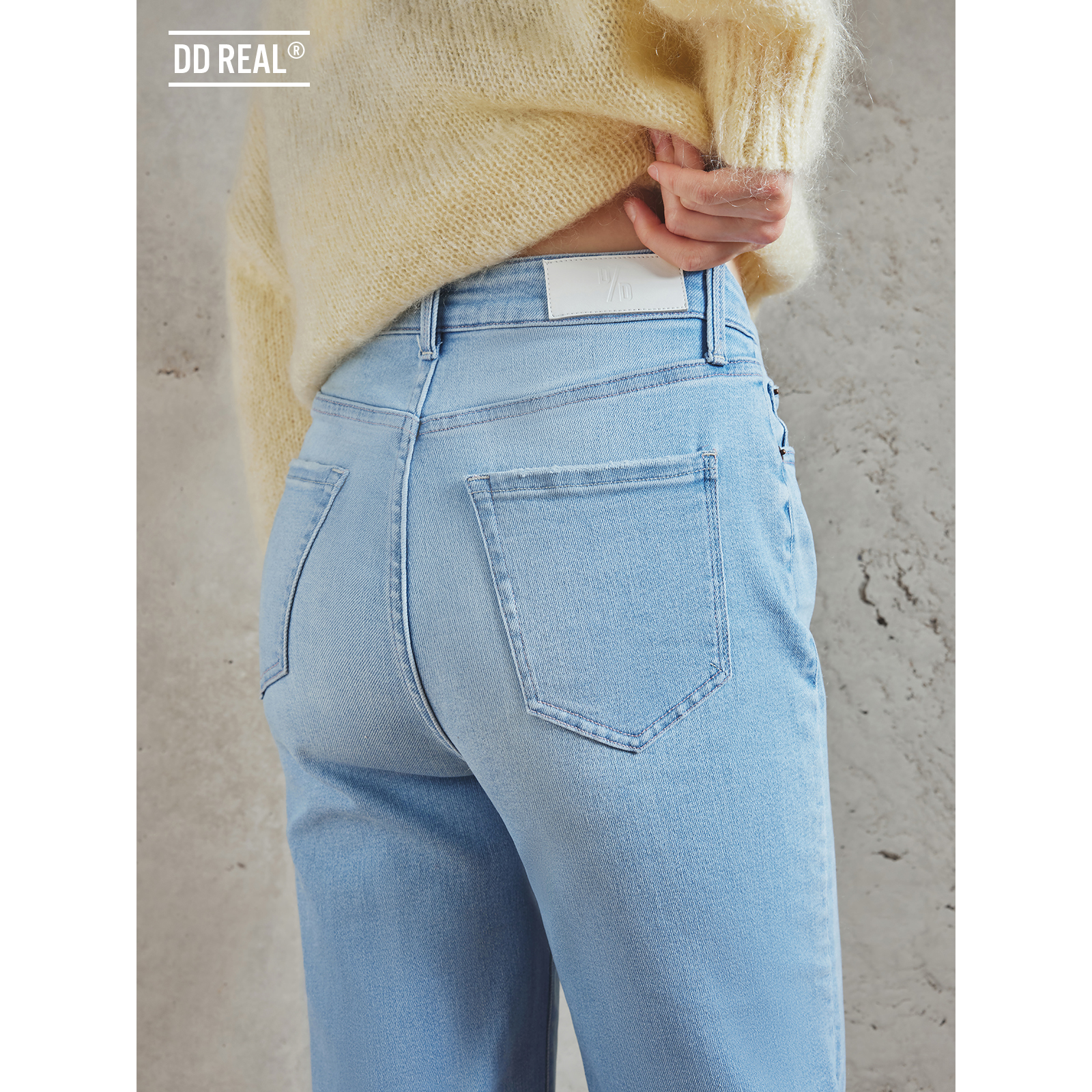 DD UrbanEase|都市轻行系列 春季高腰弹力浅蓝水洗牛仔直筒长裤