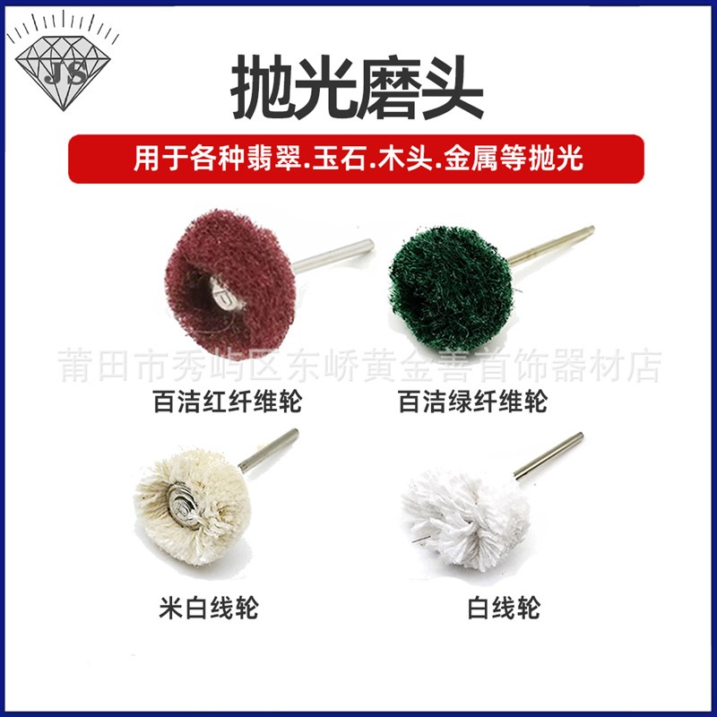 百洁红 绿布轮米白线棉轮带柄抛光布轮磨头抛光扫.迷你小布轮