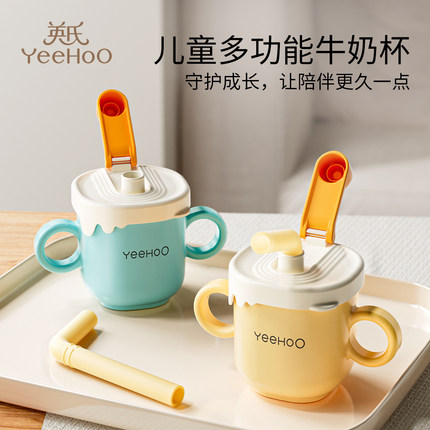 英氏直饮杯儿童刻度牛奶杯1-23岁以上宝宝喝水奶瓶学饮吸管米糊杯