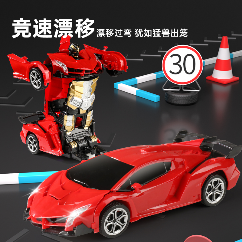 儿童遥控警车机器人手势摇控一键变形跑车金刚3岁4男孩赛车玩具车