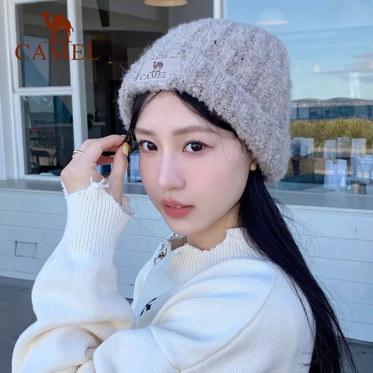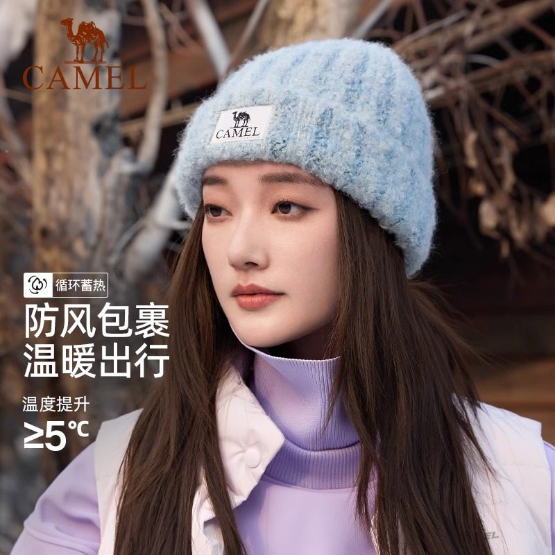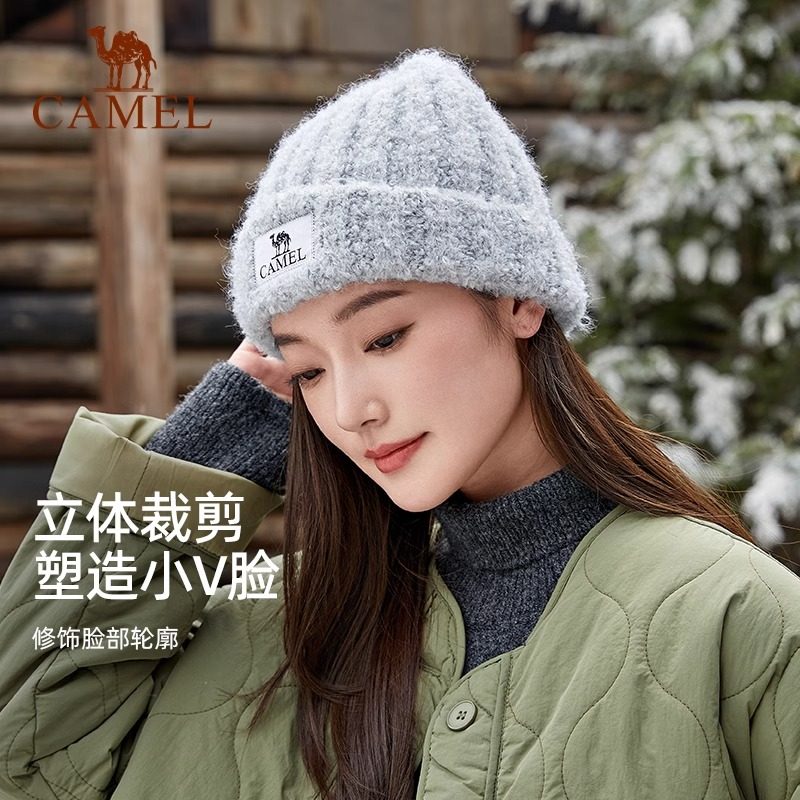骆驼羊毛纱针织帽四季新款女月子帽防风帽子男显脸小保暖毛线帽