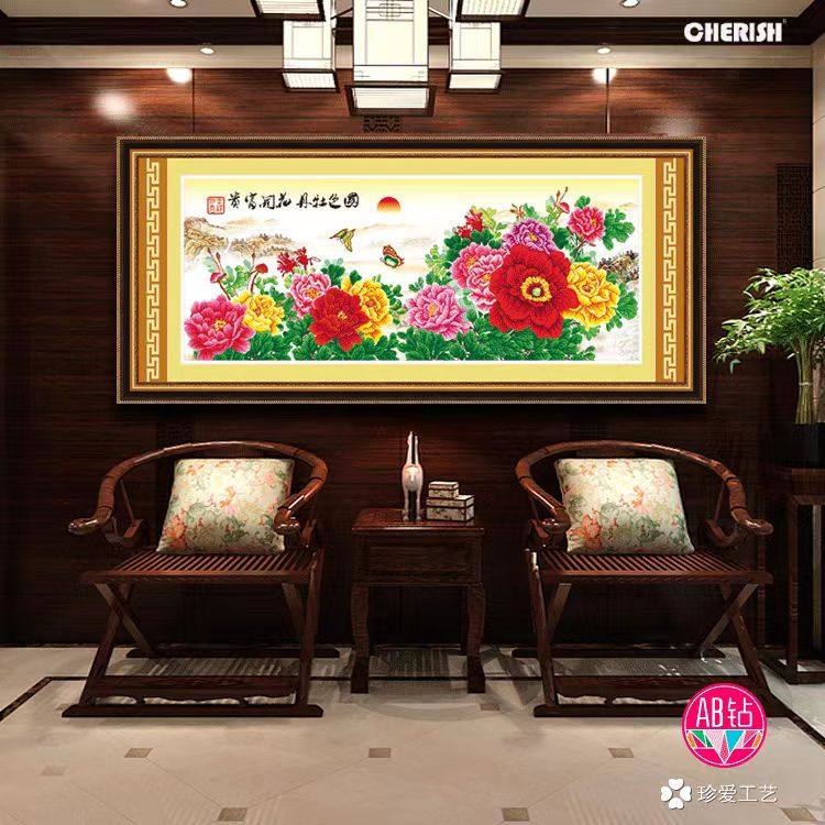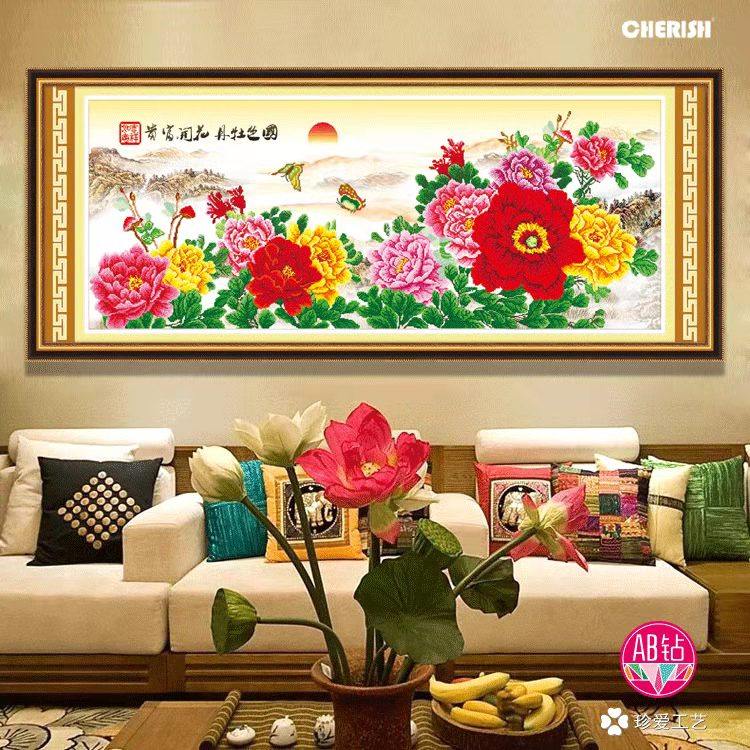 珍爱工艺爱络爱优微新款十字绣钻石画国色牡丹客厅书房纯棉宣绒布