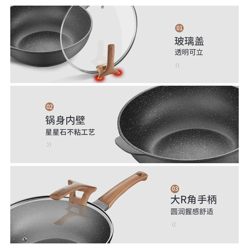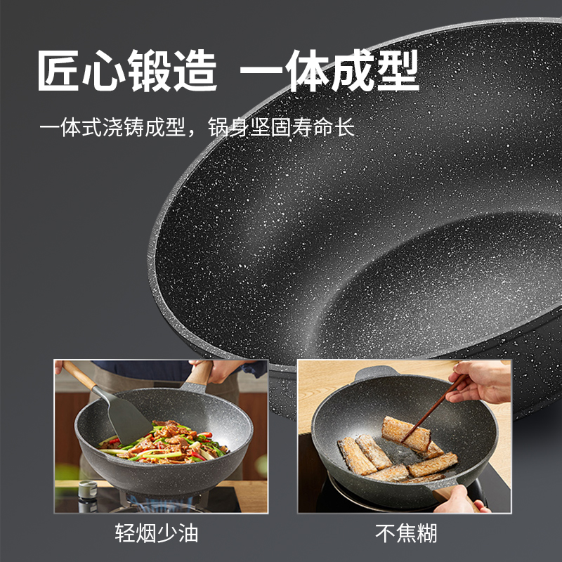 苏泊尔麦饭石色不粘锅无油烟炒锅