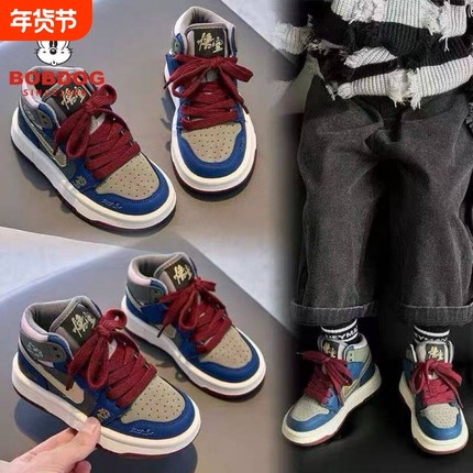 巴布豆黑悟空男童高帮板鞋2025秋冬款儿童运动鞋加绒女童潮鞋子