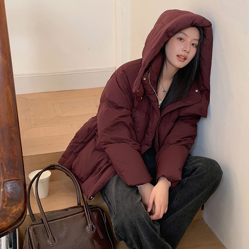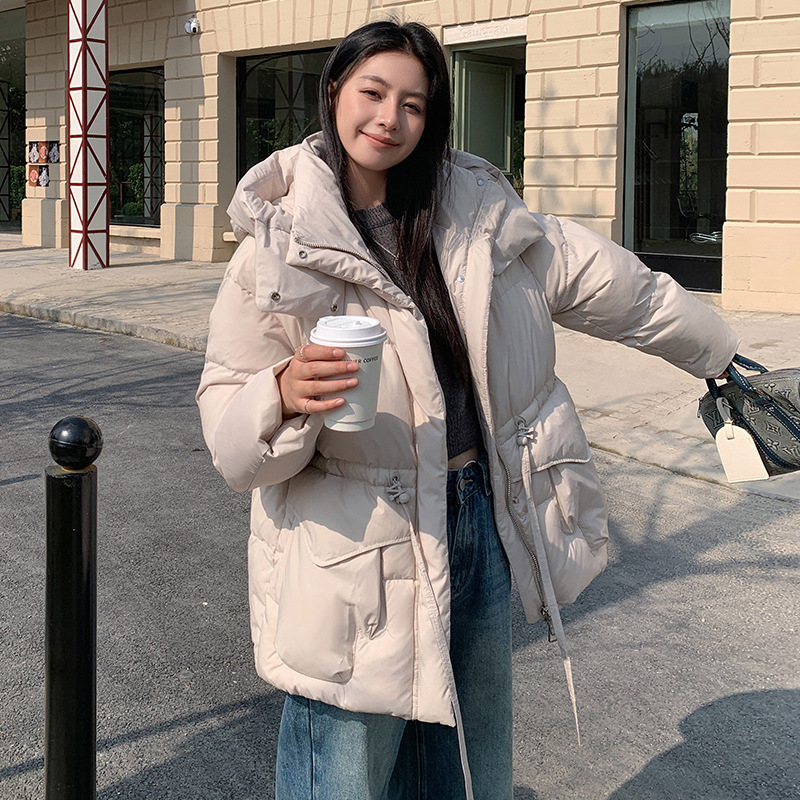 韩版2025冬季新款中长款羽绒服女士休闲加厚收腰显瘦连帽保暖外套