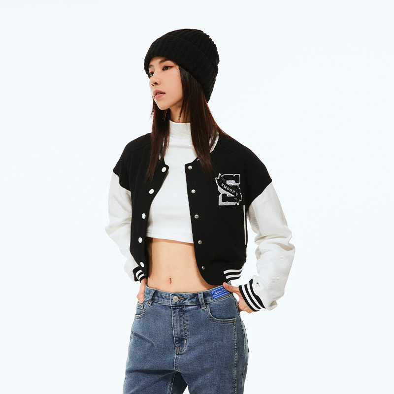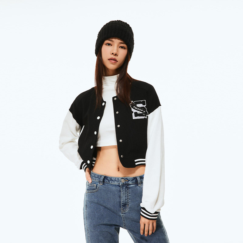 Fun潮牌棒球服女士短款秋冬新款史努比联名字母印花休闲夹克外套