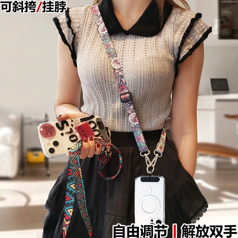 高端挂绳复古图腾斜挎背带长款可背可调节防丢手机壳手机挂脖绳子