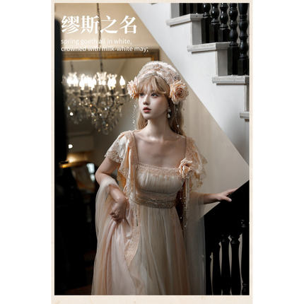 缪斯之名帝政连衣裙复古飘逸刺绣
