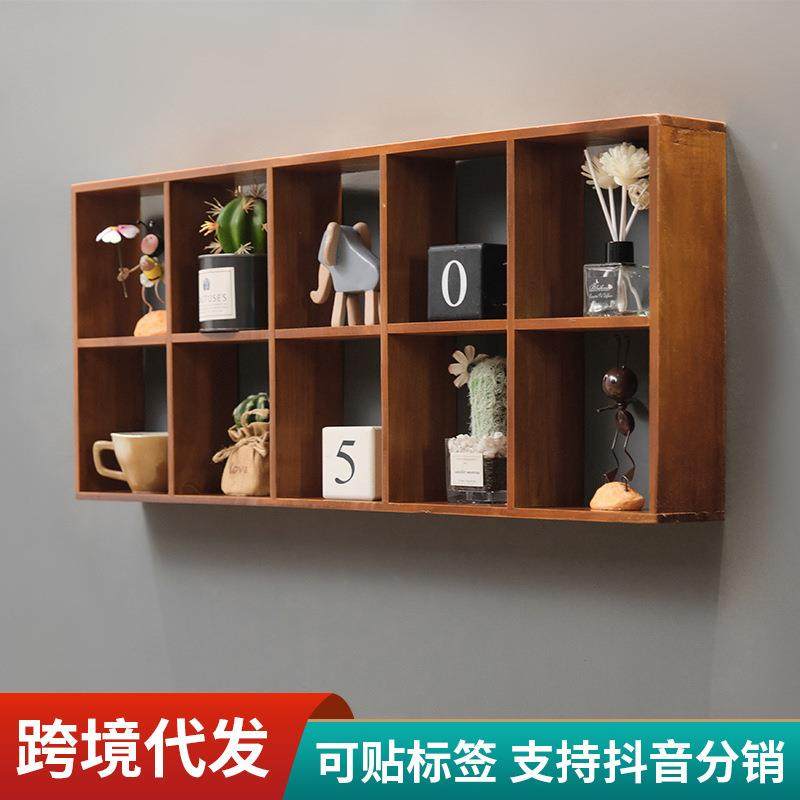 实木示复古壁饰收纳LDX格子展柜可悬墙挂木架装饰挂面饰墙上置物