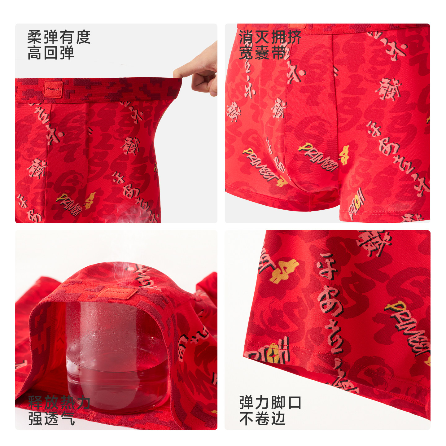 派米马年红色内裤男士秋冬抑菌2026本命年男款新年礼物短裤礼盒装