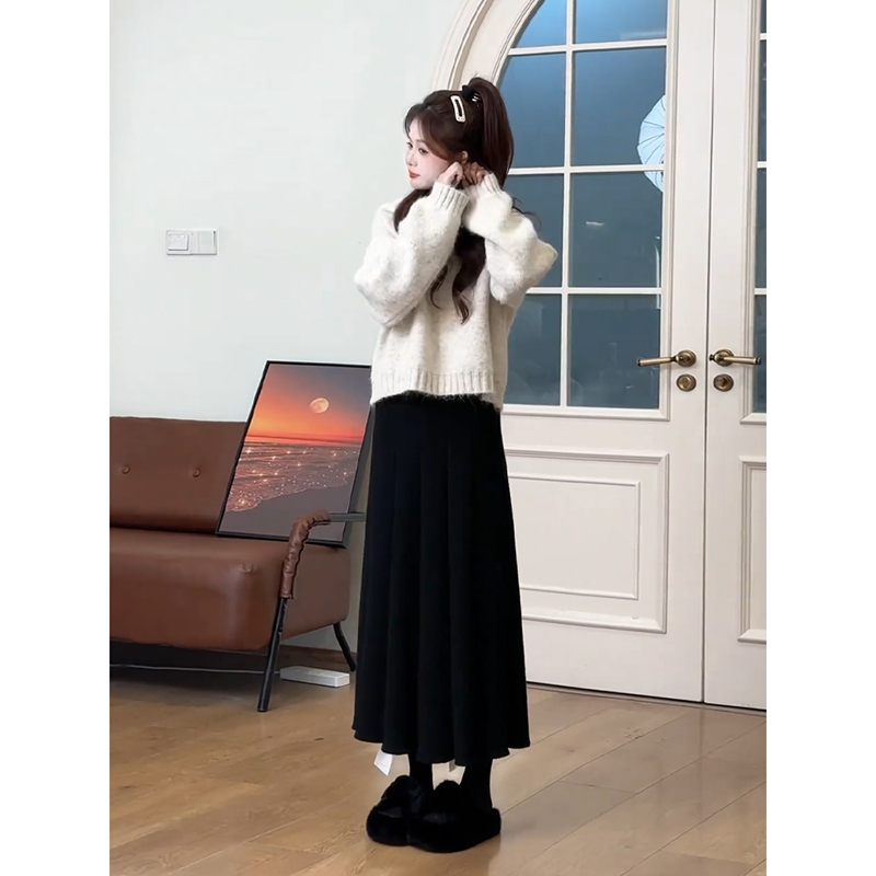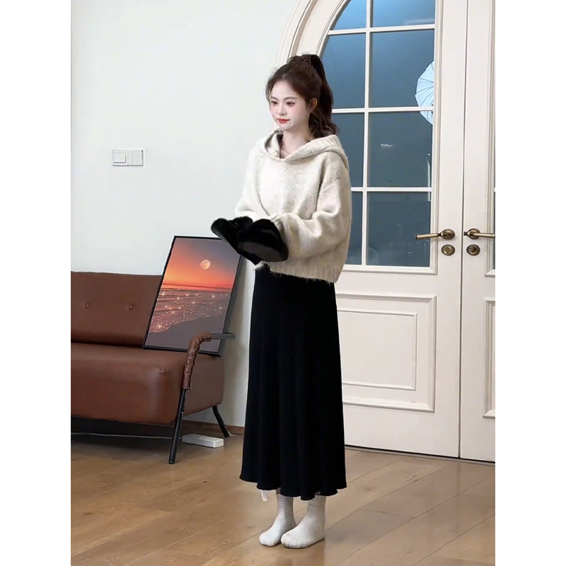 小个子减龄漂亮洋气套装裙秋冬高级感韩系时尚连帽毛衣显瘦两件套
