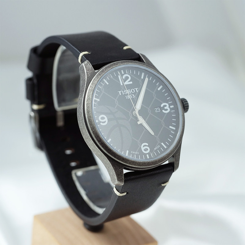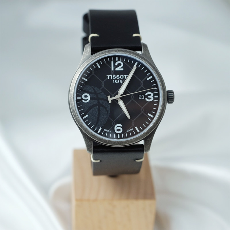【自营】中古全新未使用天梭运动系列男表石英手表黑盘牛皮腕表