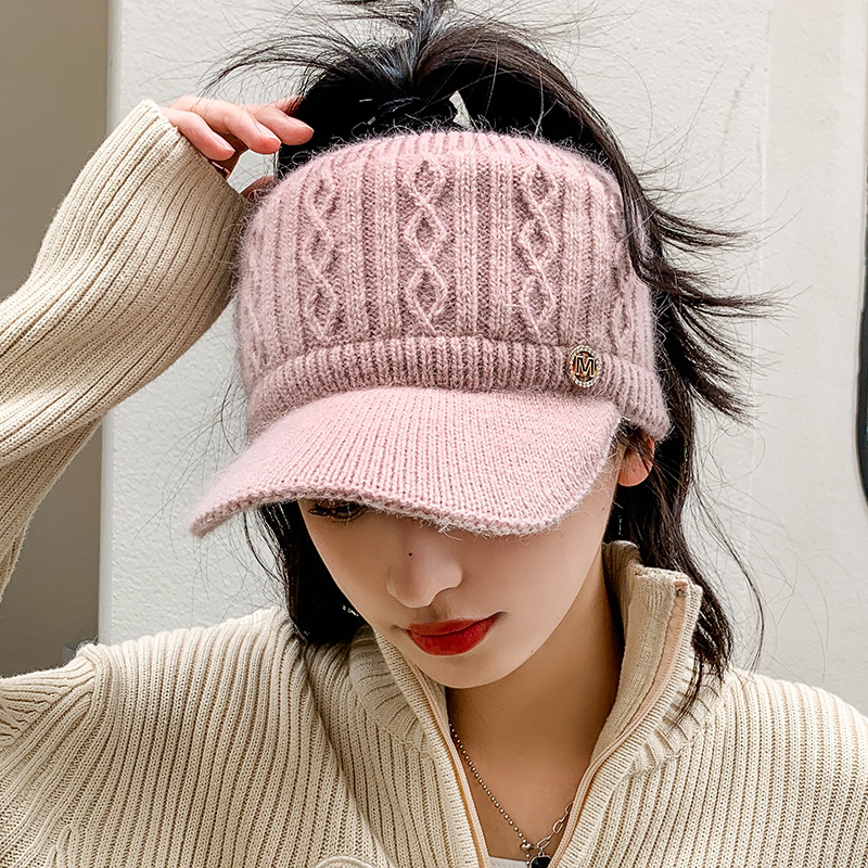 针织毛线空顶鸭舌帽女冬保暖护耳