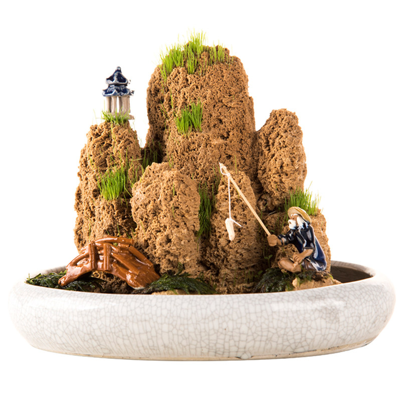 吸水石 盆 底座上水石底盘清仓椭圆形盆景假山微景观绿植多肉花盆