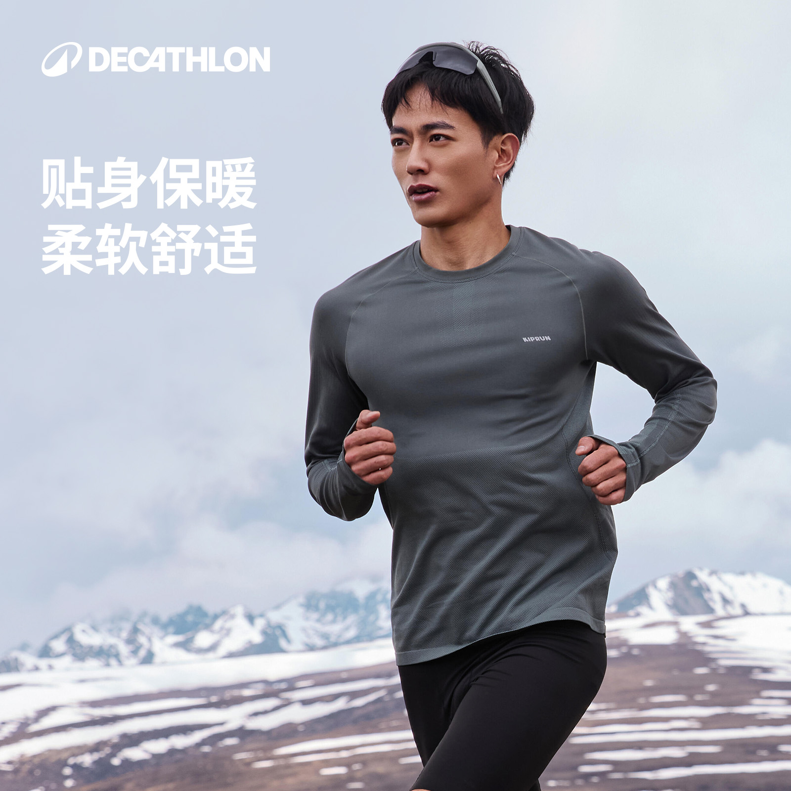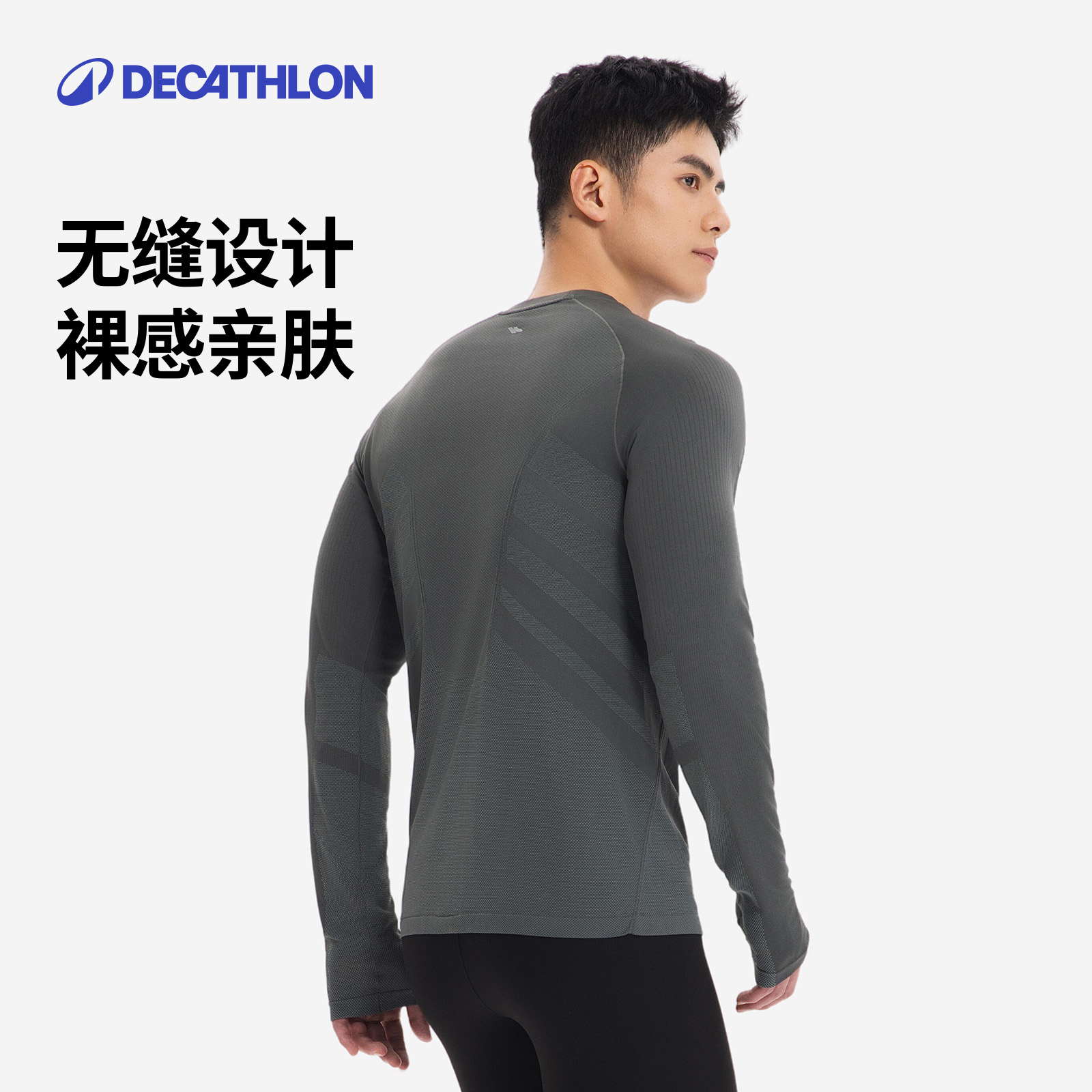 迪卡侬健身长袖男贴身保暖柔软舒适吸湿速干弹力轻盈运动T恤SAT2