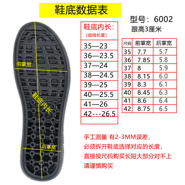 女款坡跟大码橡胶鞋底防滑底胶粘冬季短靴换底修鞋材料手工6002