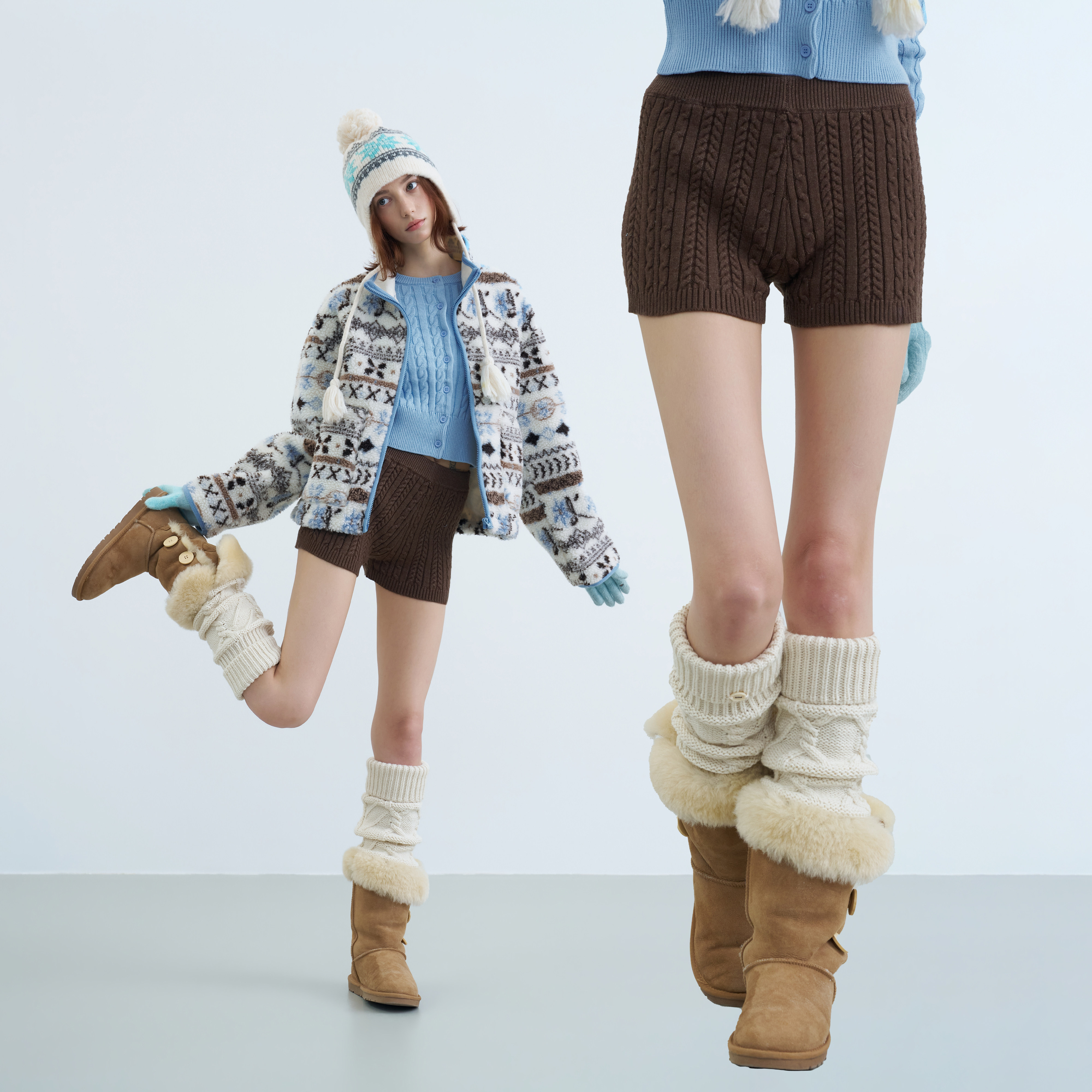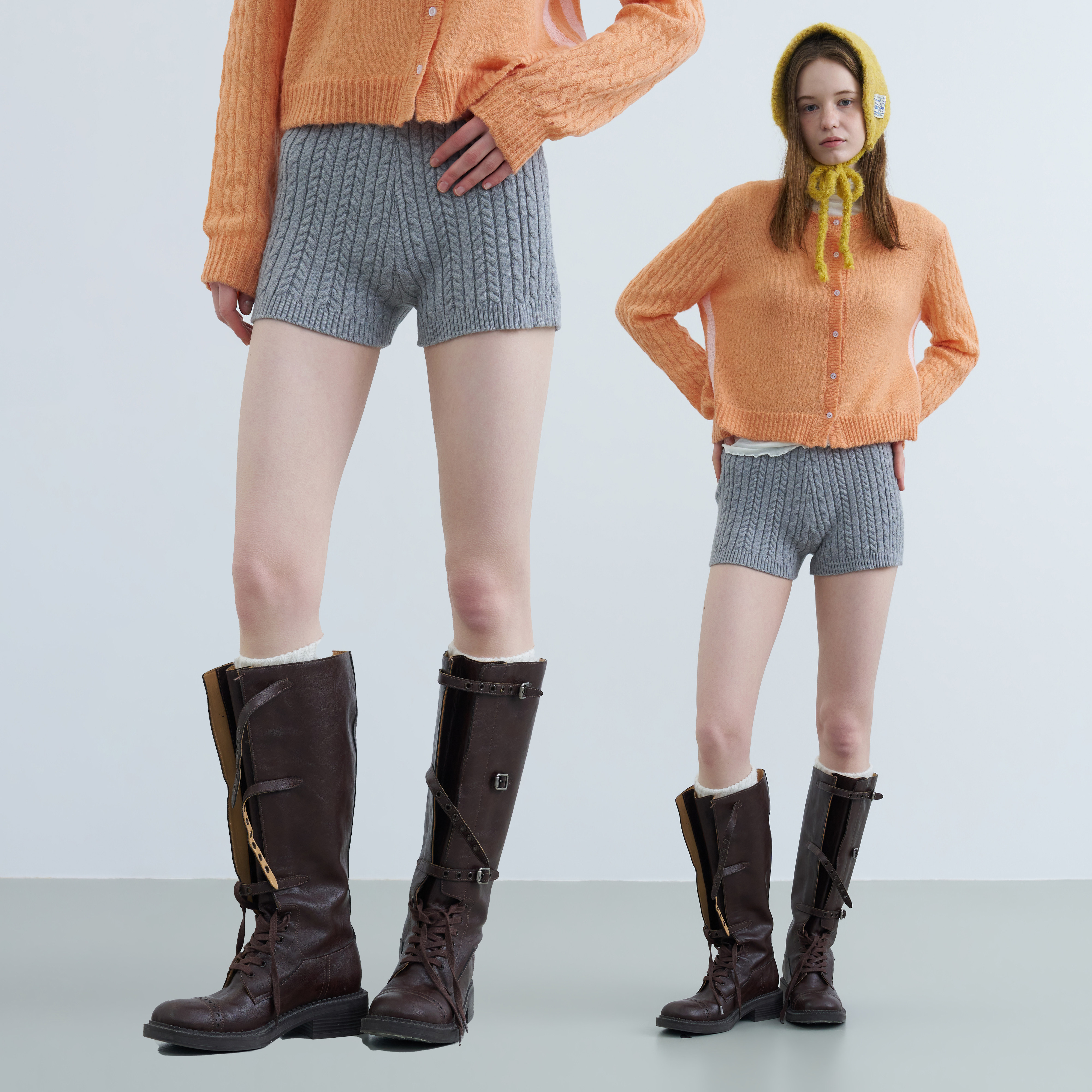 riverstone plus 美式复古毛线针织短裤女麻花纹显瘦打底休闲裤