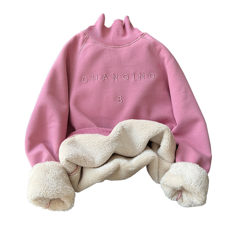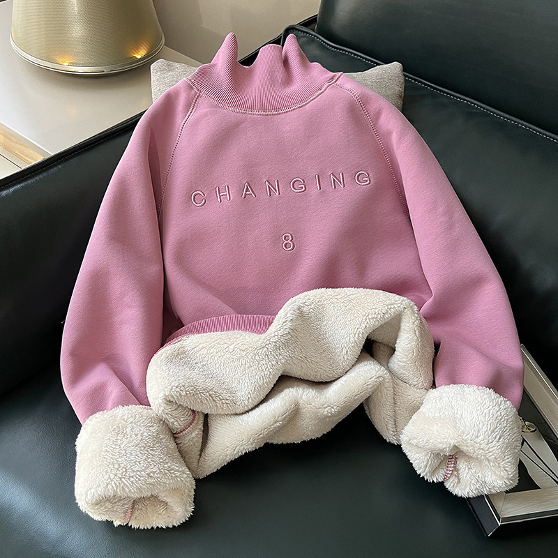 仿羊羔绒加绒加厚高领卫衣女秋冬
