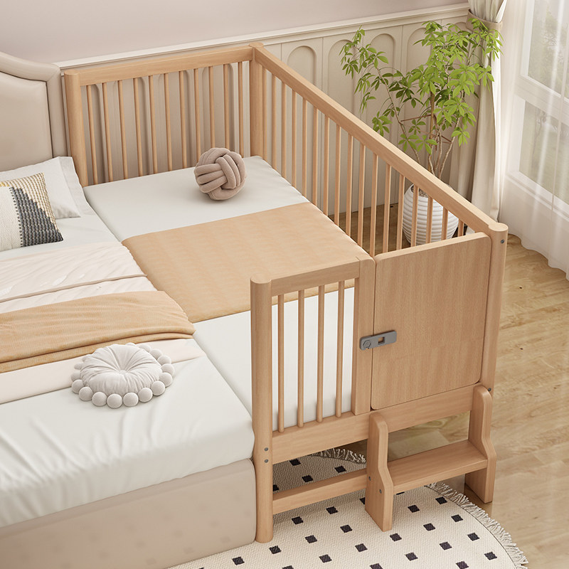 拼接床婴儿加高护栏床边加宽榉木