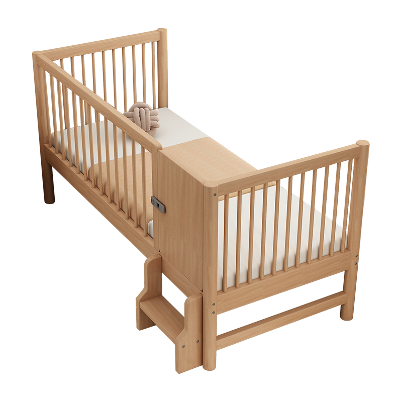 榉木儿童拼接床可调节高度床边加宽小床婴儿实木床宝宝带护栏定制