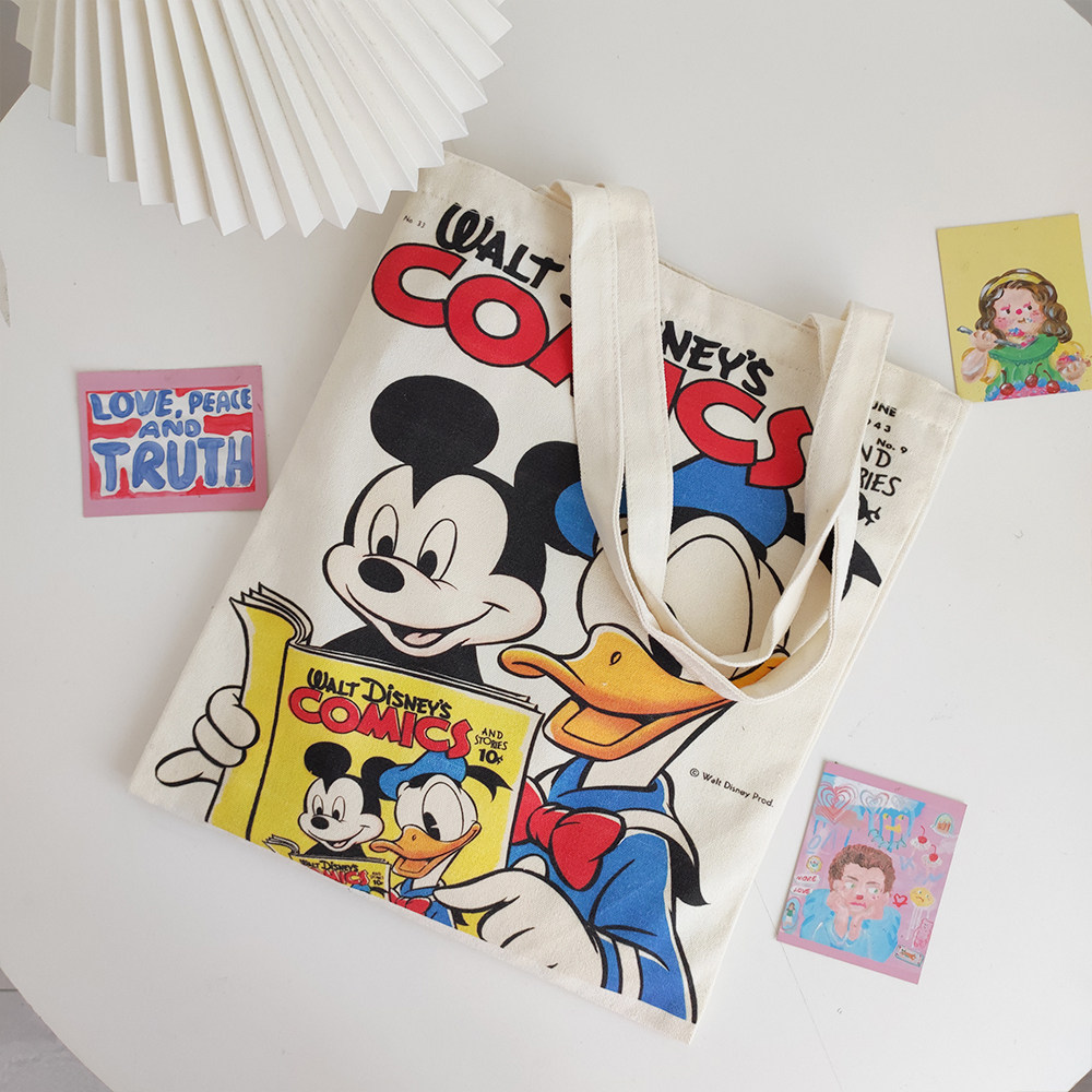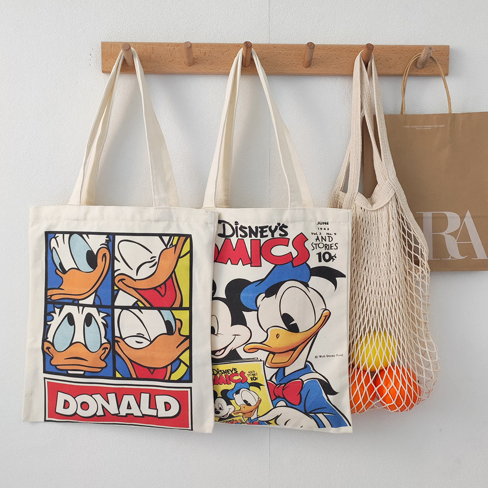 原创小众帆布包女新款2023夏季唐老鸭手提袋大学生装书单肩托特包
