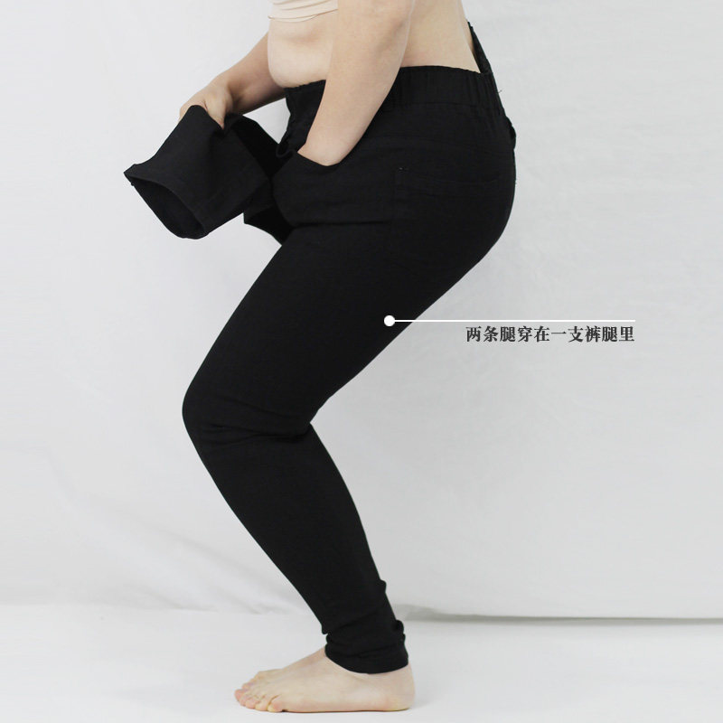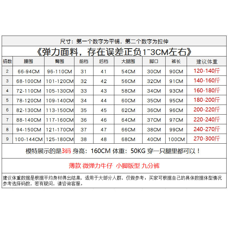 胖mm加肥松紧腰休闲牛仔小脚9分裤高腰薄款特大码300斤九分牛仔裤