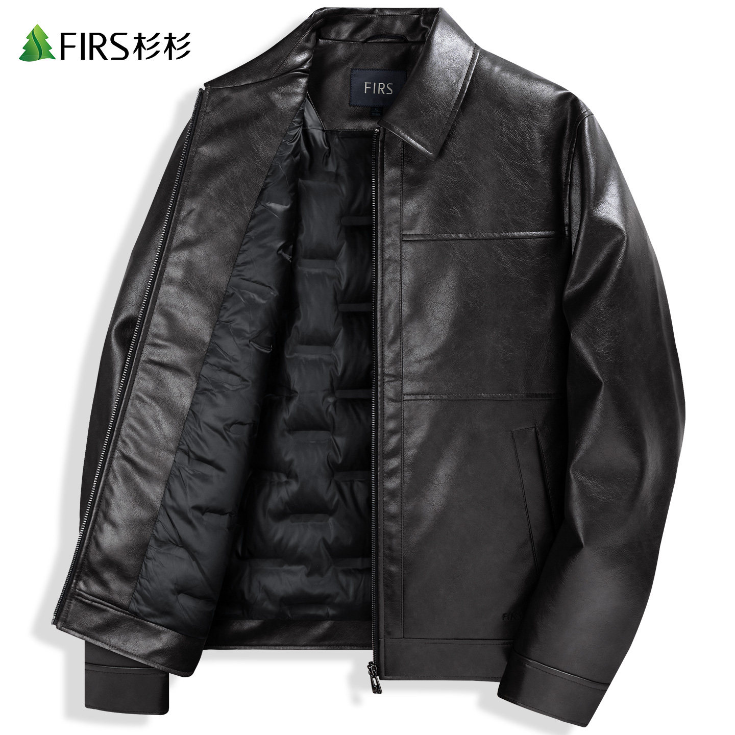 【羽绒内胆】杉杉翻领皮衣夹克男2025秋冬新款PU皮商务防风外套