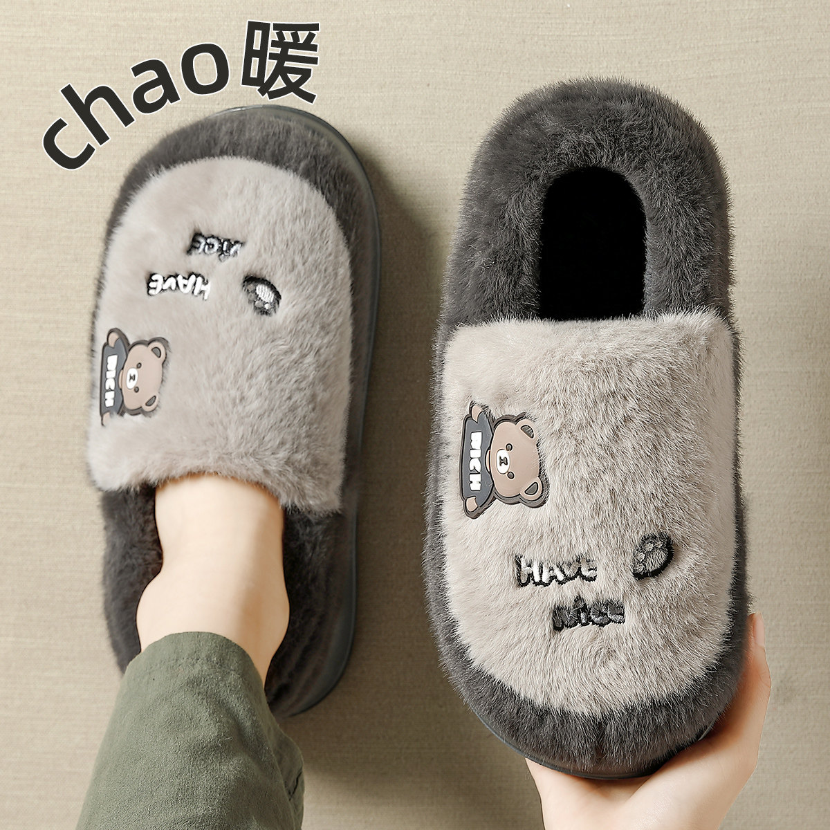 踩屎感棉拖鞋男士冬季2025新款包跟室内家居厚底毛绒保暖棉鞋男款