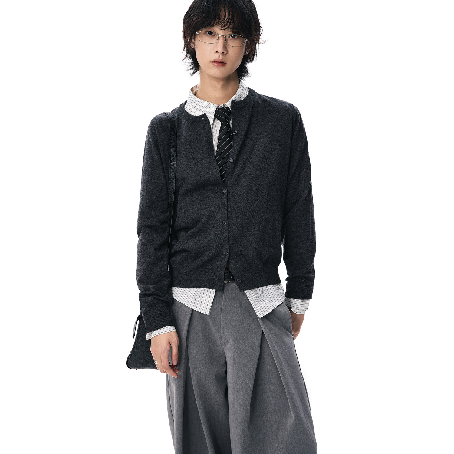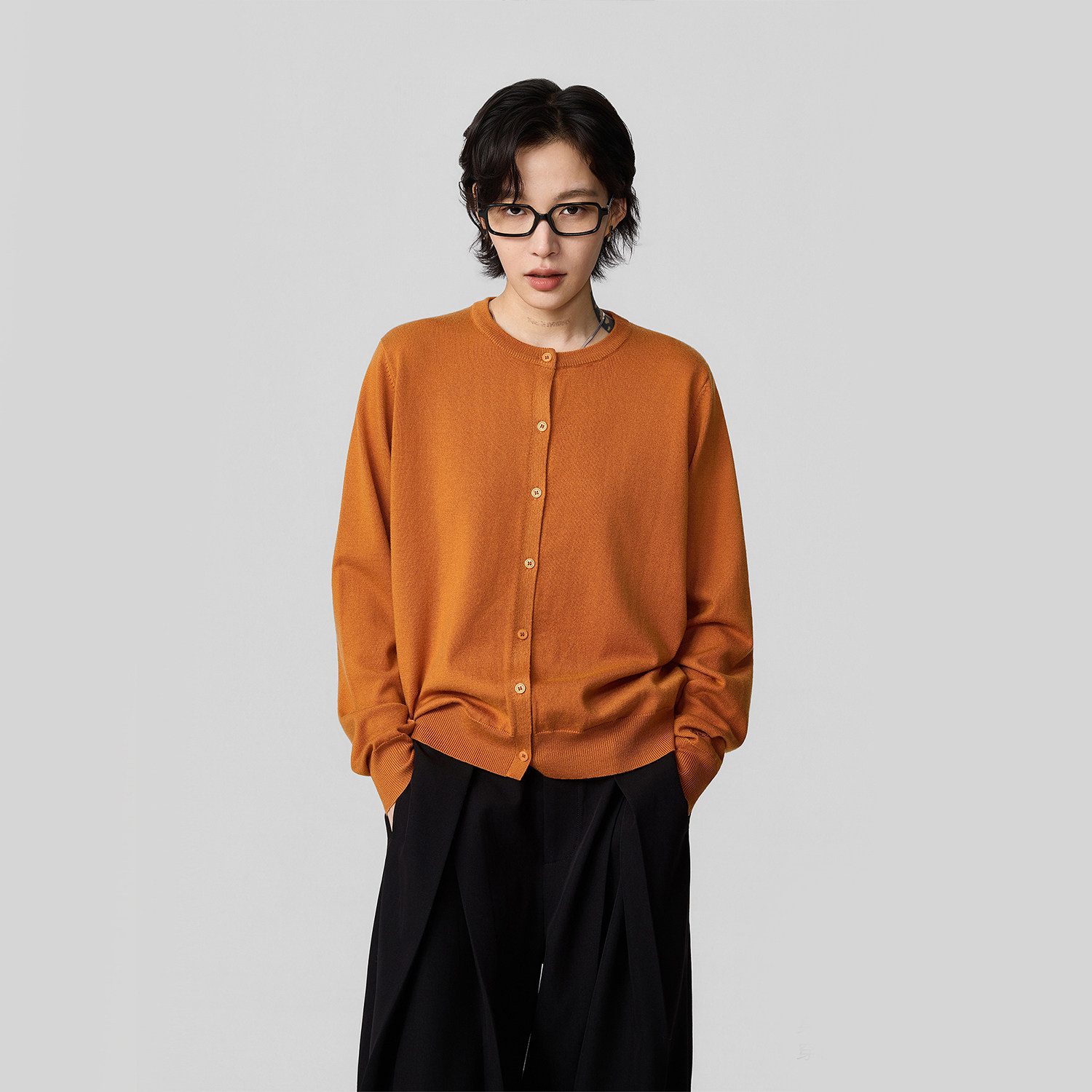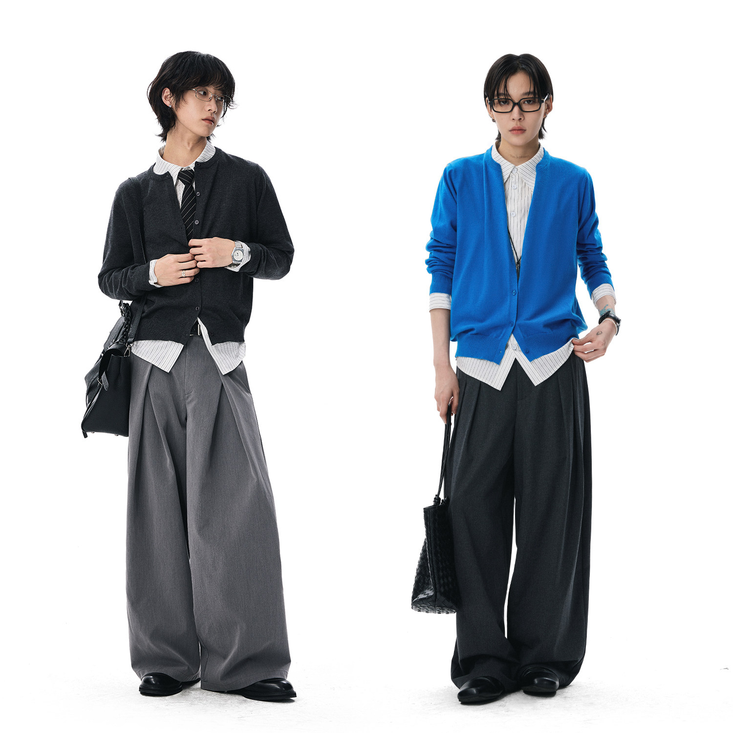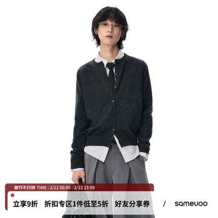 sameuoo散养文化「里度」羊毛混纺蓝色开衫毛衣外穿内搭针织衫