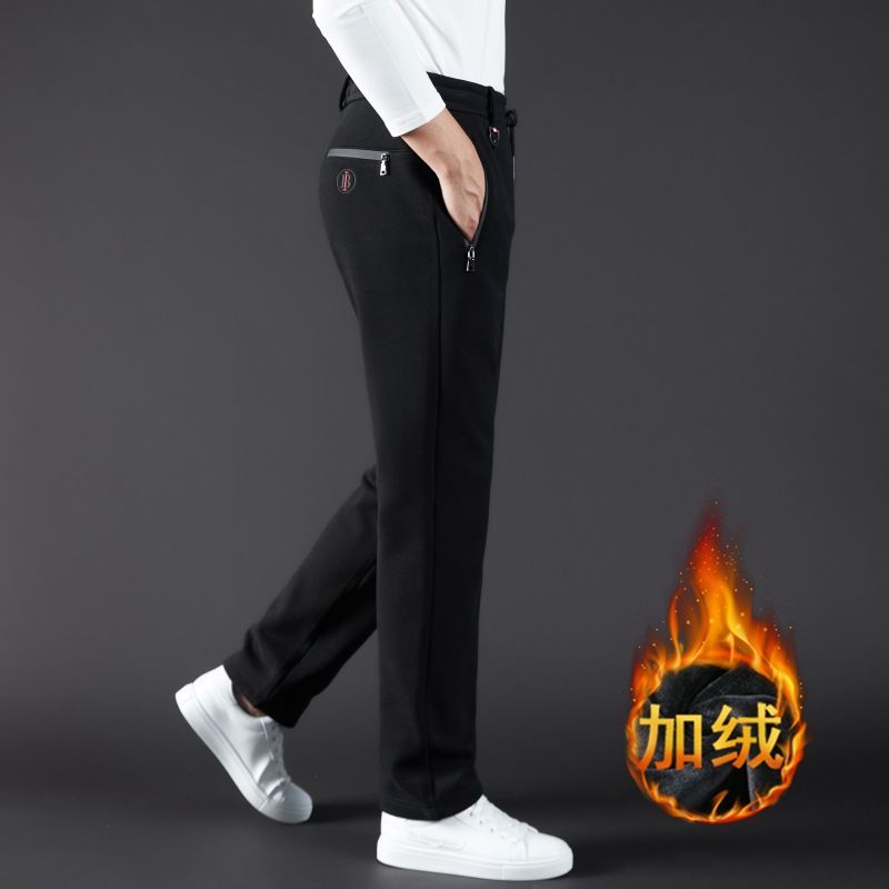 高档男士裤子冬季加绒加厚直筒休闲裤男宽松运动裤秋冬大码男裤