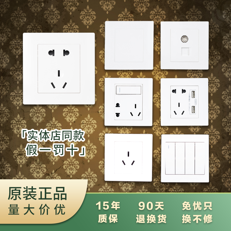 公牛墙壁开关白色家用G32守护系列单双控五孔USB电脑86型暗装插座