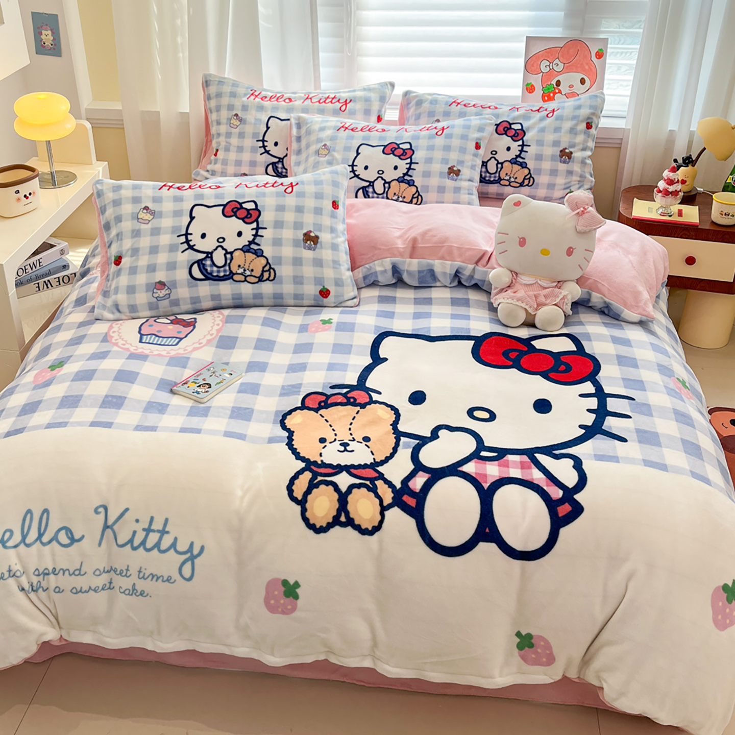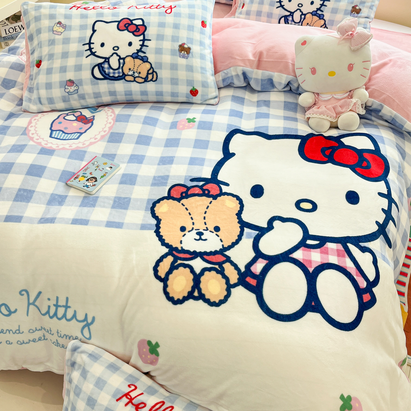 helloKitty加厚牛奶绒四件套冬季珊瑚绒床单被套儿童床品三件套女