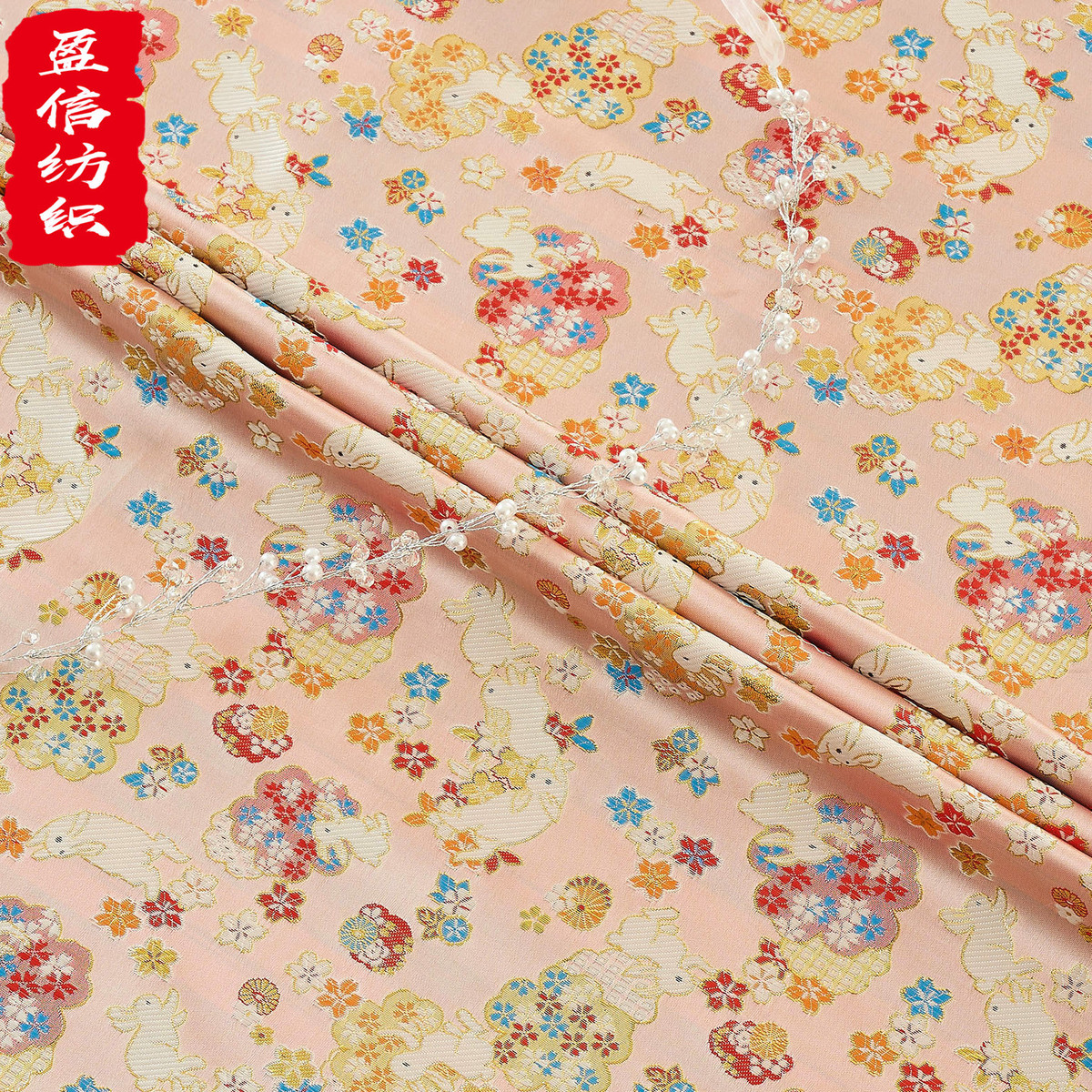 150服玉兔高精密织锦缎提花服装面料和风拜年幅宽布料中国风