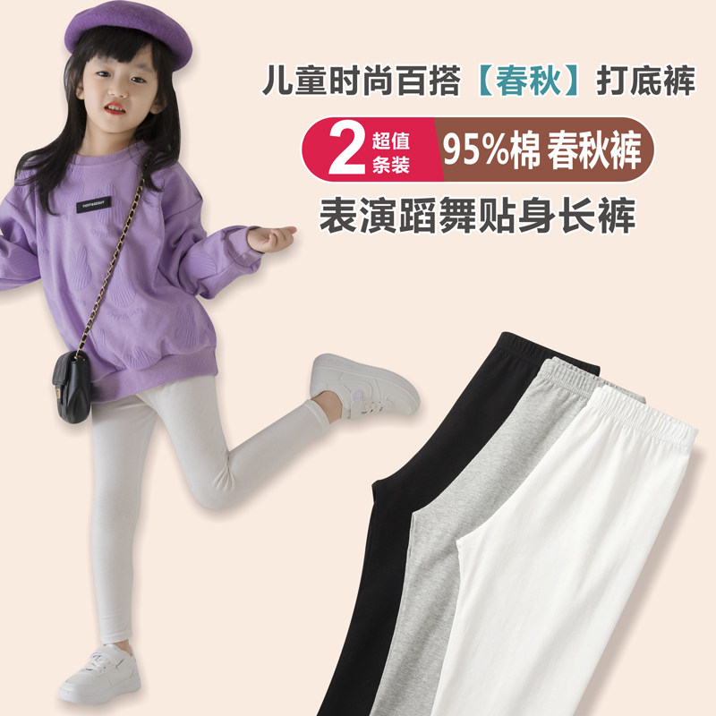 女童打底裤纯棉春秋黑白色内外穿儿童表演舞蹈黑色春夏季宝宝长裤