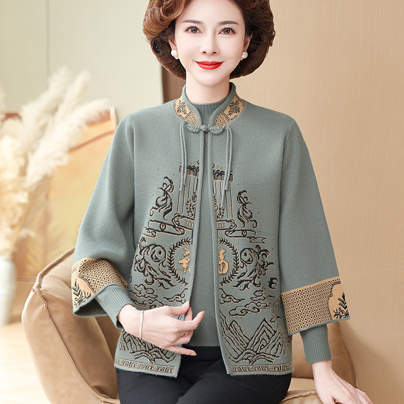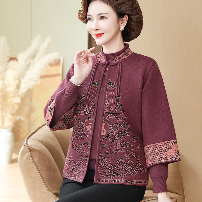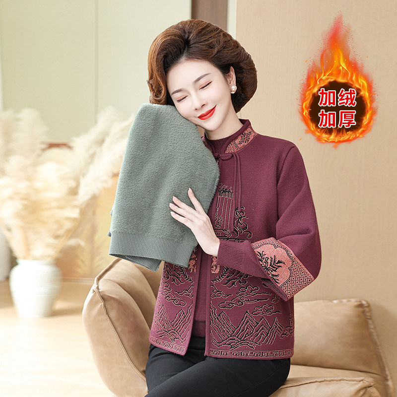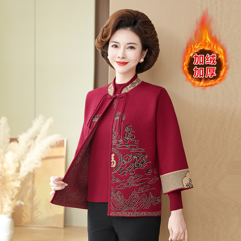 老年人奶奶秋装女针织两件外套中老年妈妈春秋红色本命年婚礼上衣