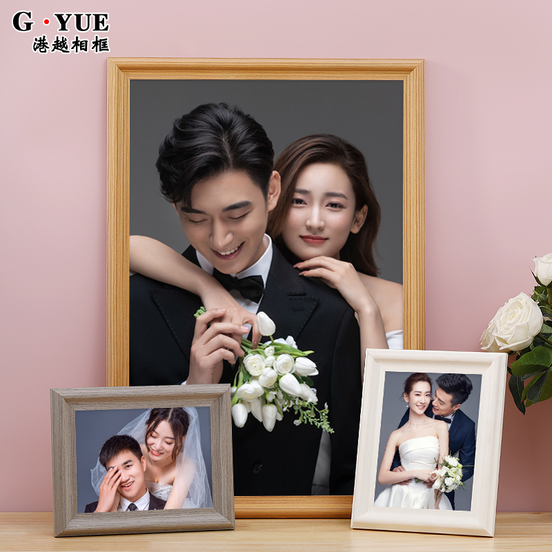 创意实木婚纱照相框挂墙洗照片打印冲印加带做成摆台放大空框定制