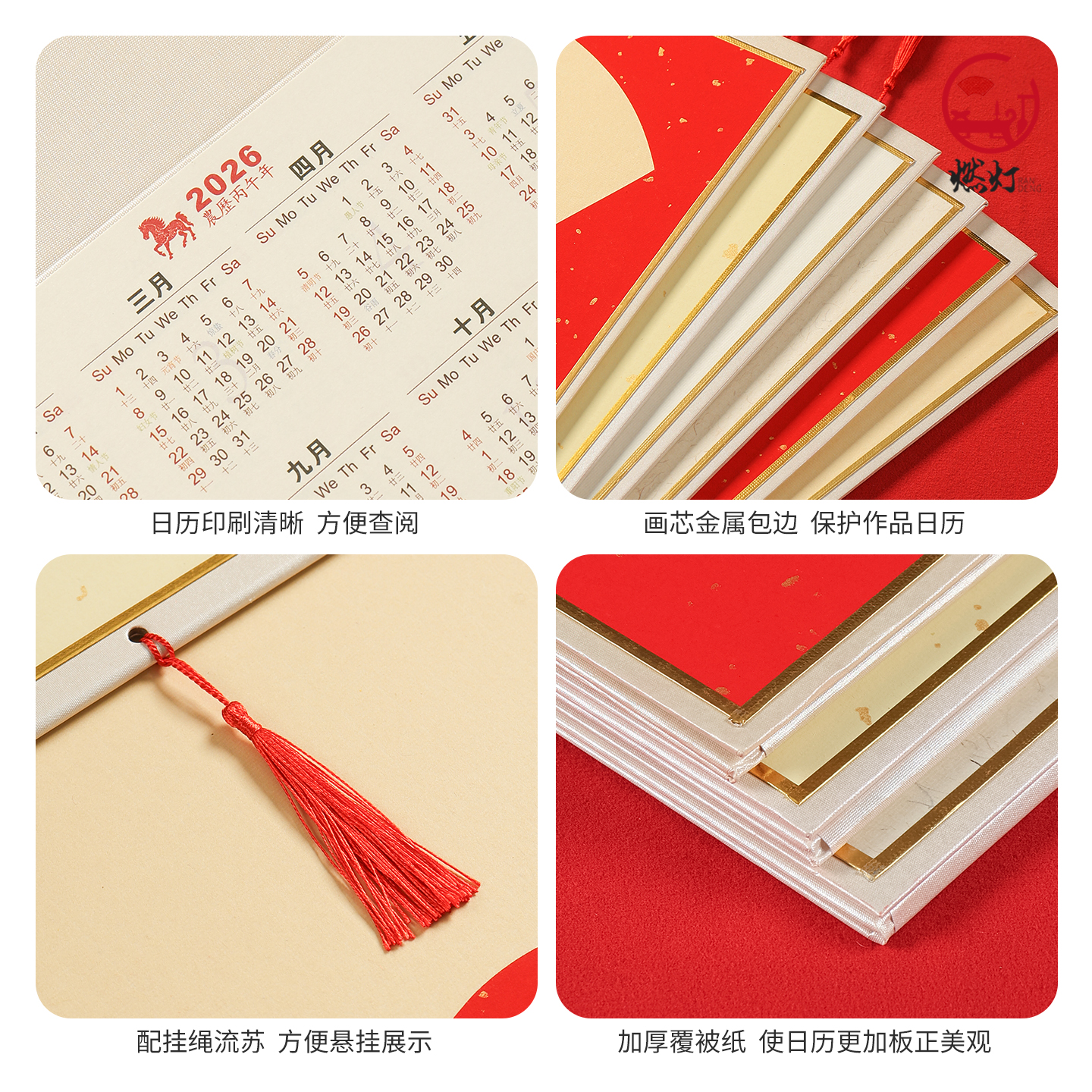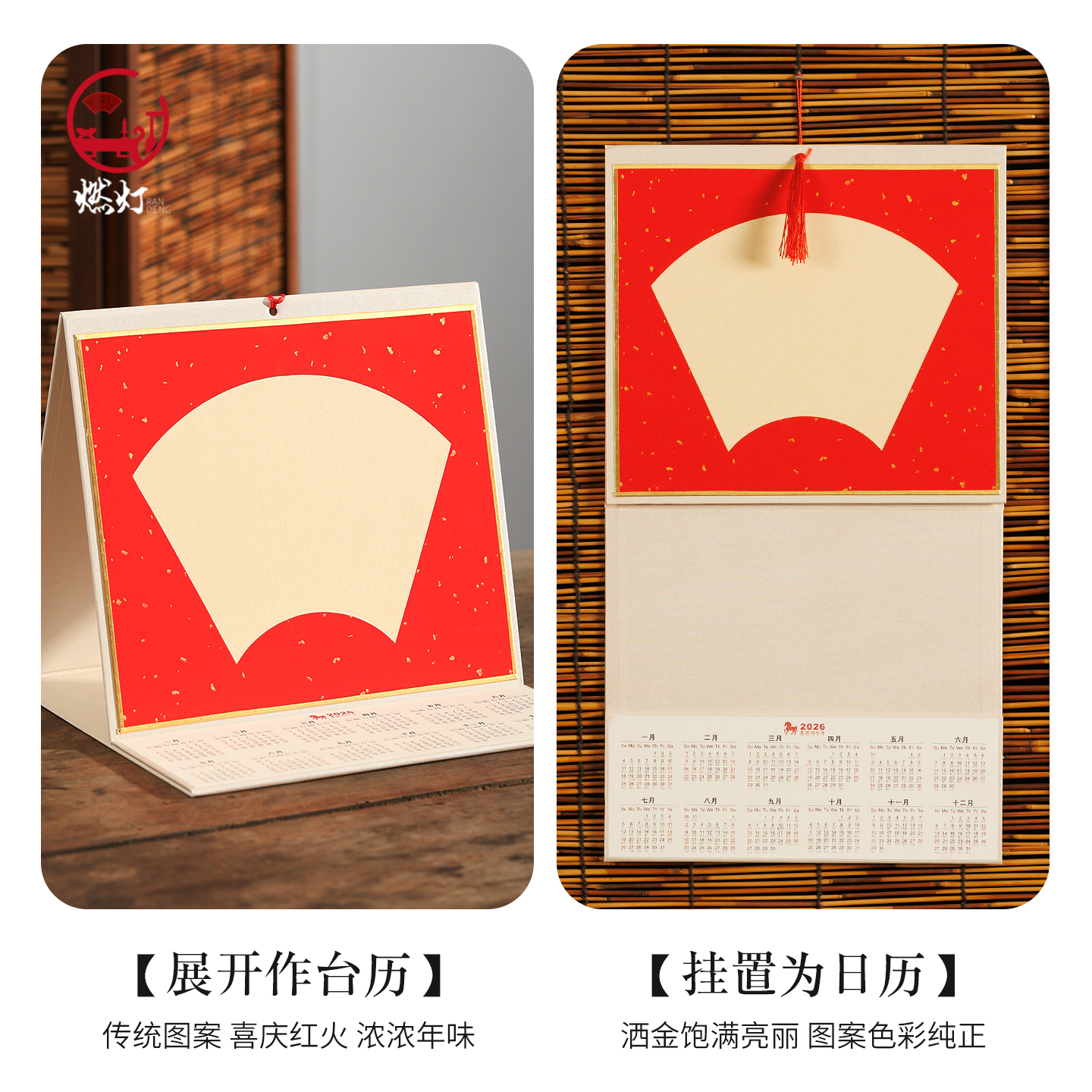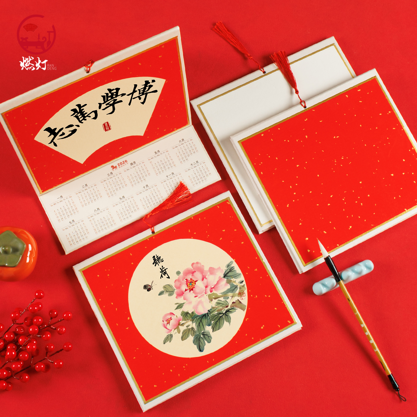 燃灯2026年台历空白宣纸日历免装裱硬卡纸国画diy手写毛笔字书法挂历万年红福字小品用创意丙午马年桌面摆件