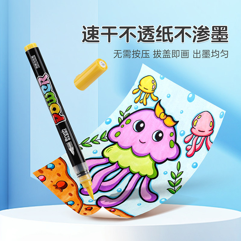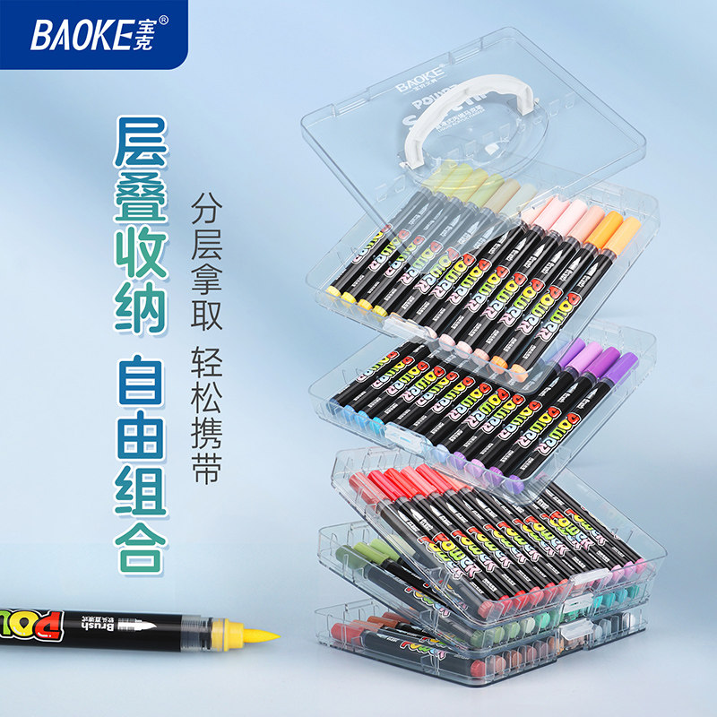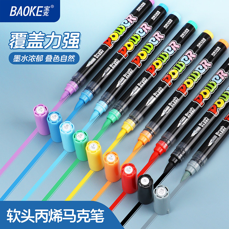 宝克直液式丙烯马克笔软头小学生专用亚克力层叠盒不易透纸强覆盖力可叠色涂鸦DIY美术画画水彩笔高颜值