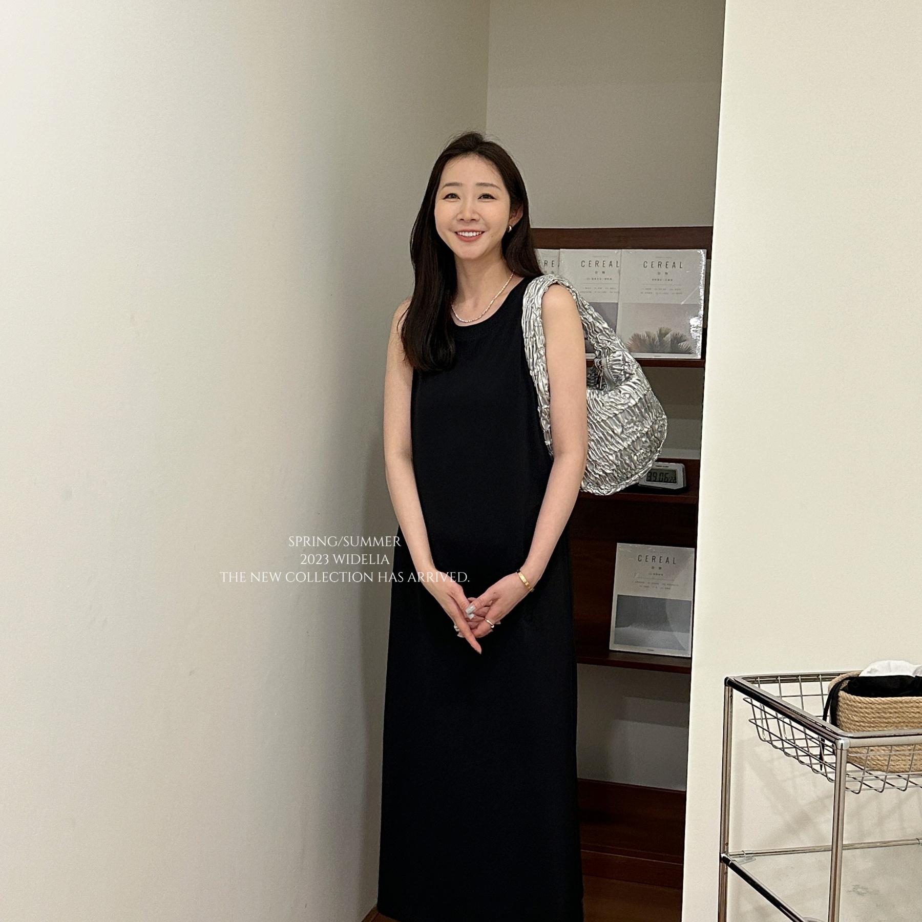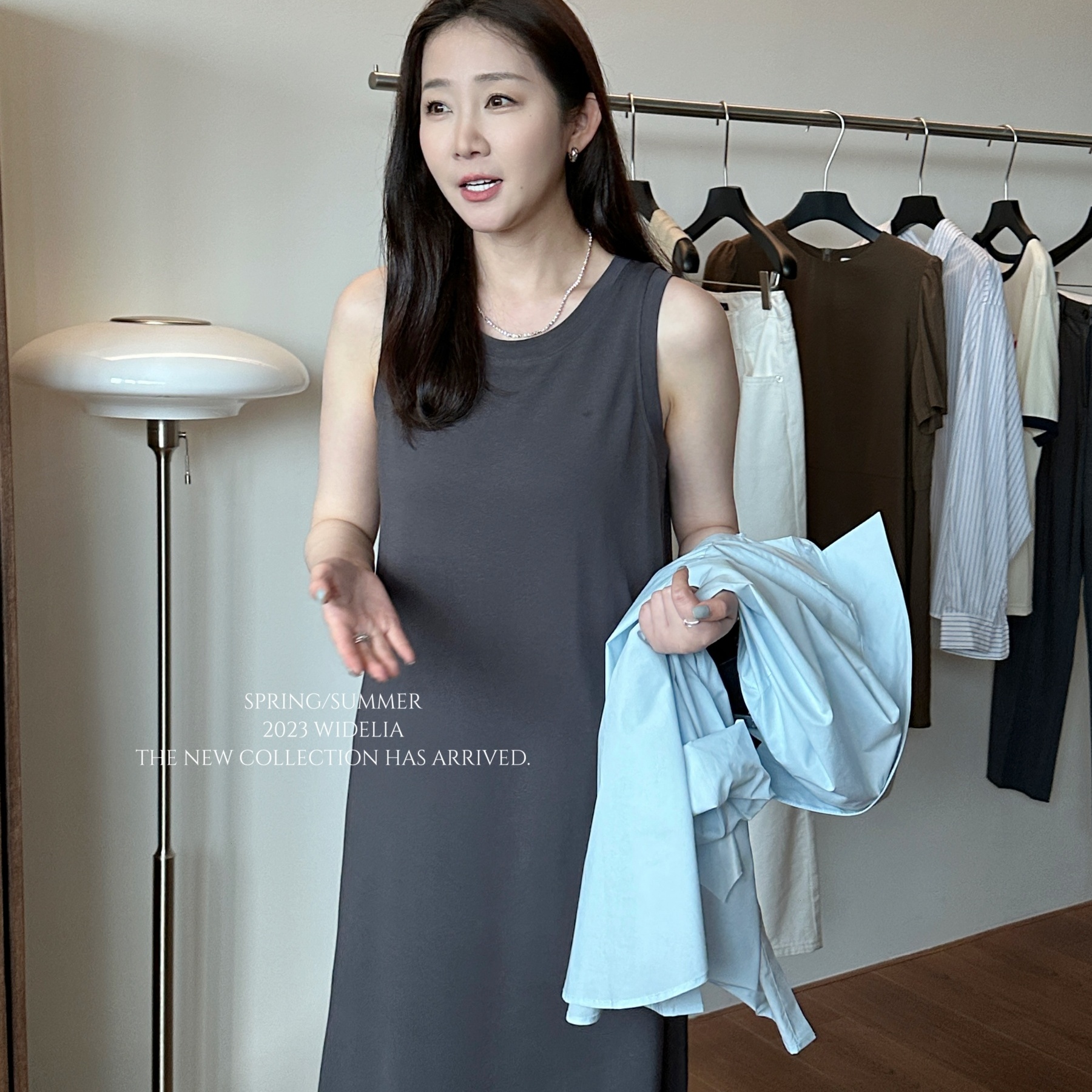 widelia老板娘夏季新款简约纯色显瘦宽松背心裙无袖中长款连衣裙