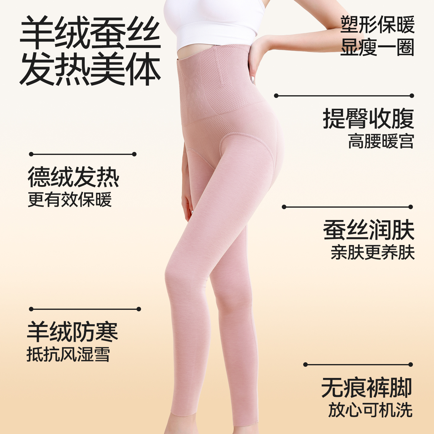 秋裤女收腹提臀秋冬羊绒蚕丝德绒自发热高腰棉毛裤打底塑身保暖裤