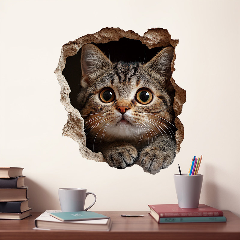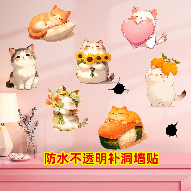 可爱小猫贴纸遮丑装饰小图案不透明墙面贴砖裂痕墙壁钉眼防水贴画