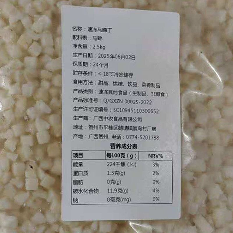 速冻马蹄丁广西小粒云吞饺子馅料糖水奶茶虾滑小料包子狮子头商用