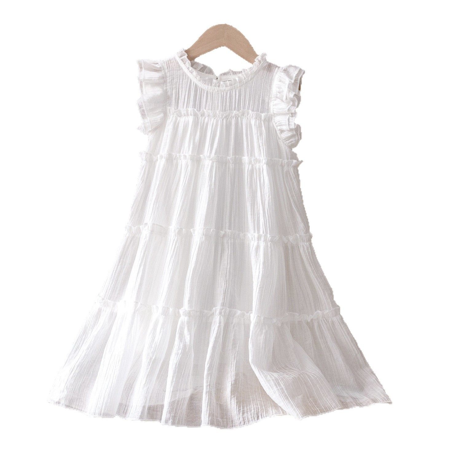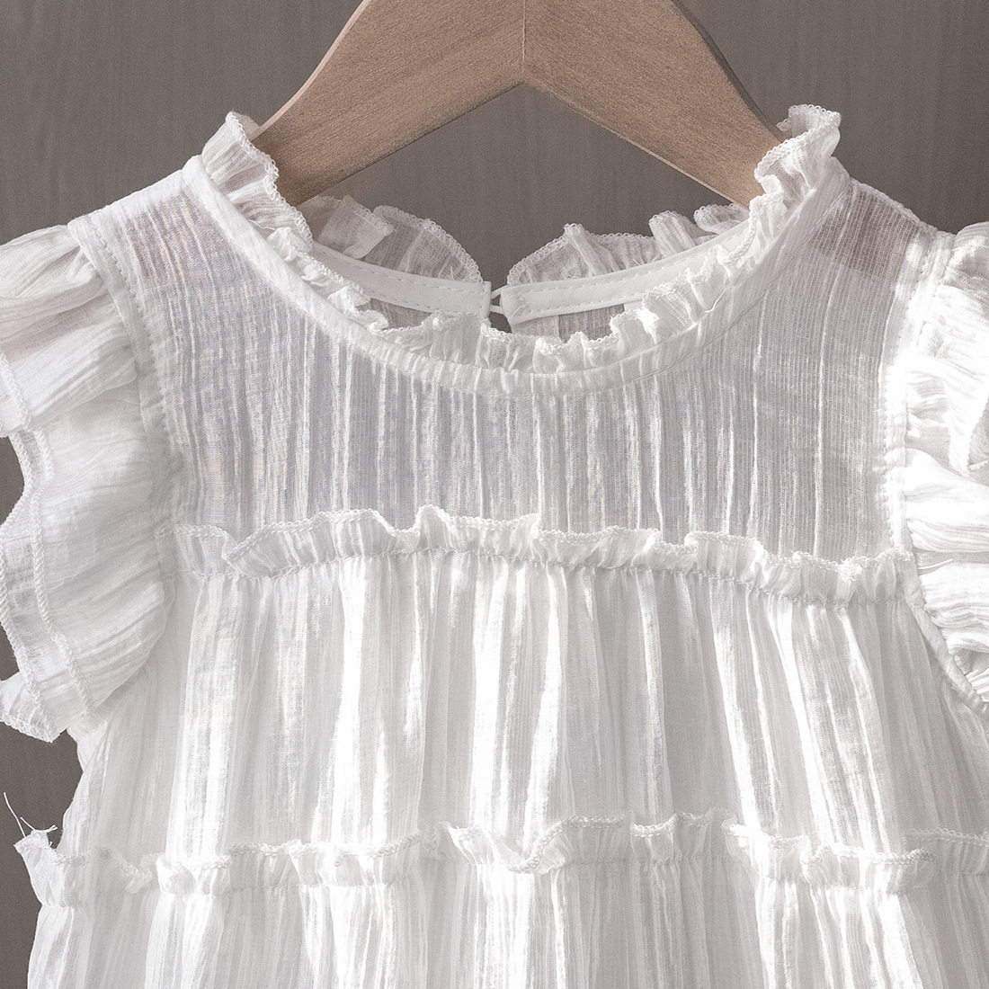 母女亲子装法式小香风飞袖白色连衣裙女童夏甜美木耳边公主裙