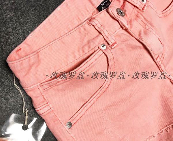 Mini Brand夏季女式超软面料弹力修身提臀低腰水粉色牛仔短裤热裤